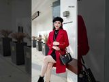 Áo măng tô tay dài dạ lông cừu đỏ cổ B khuy ngang túi cong