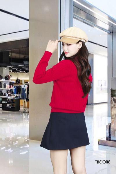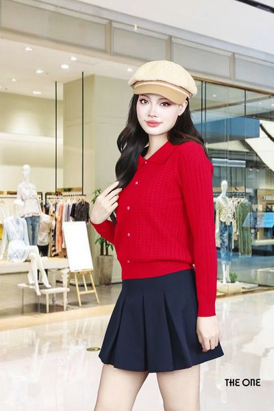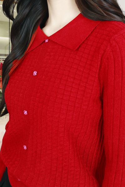 Áo len polo lông thỏ đỏ đậm tay dài bo gấu khuy dọc thân