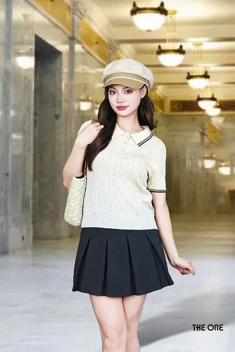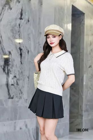 Áo len kem cổ đức 3 khuy tay cộc bo gấu viền đen cổ và tay