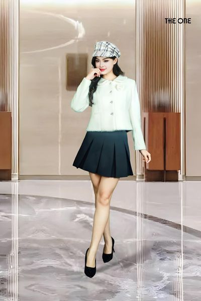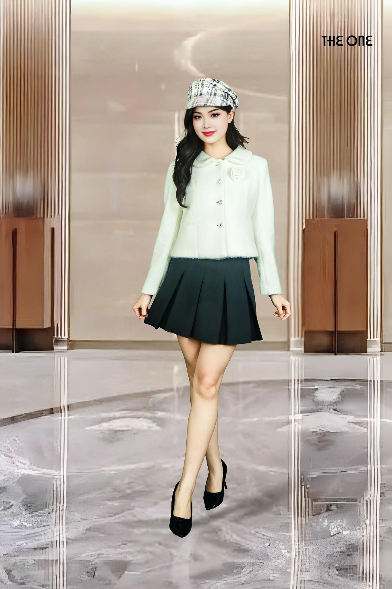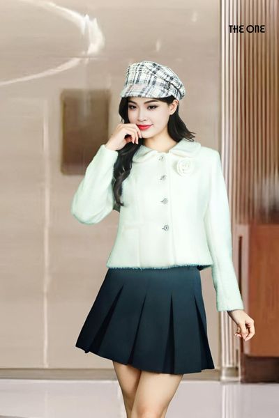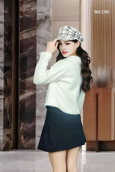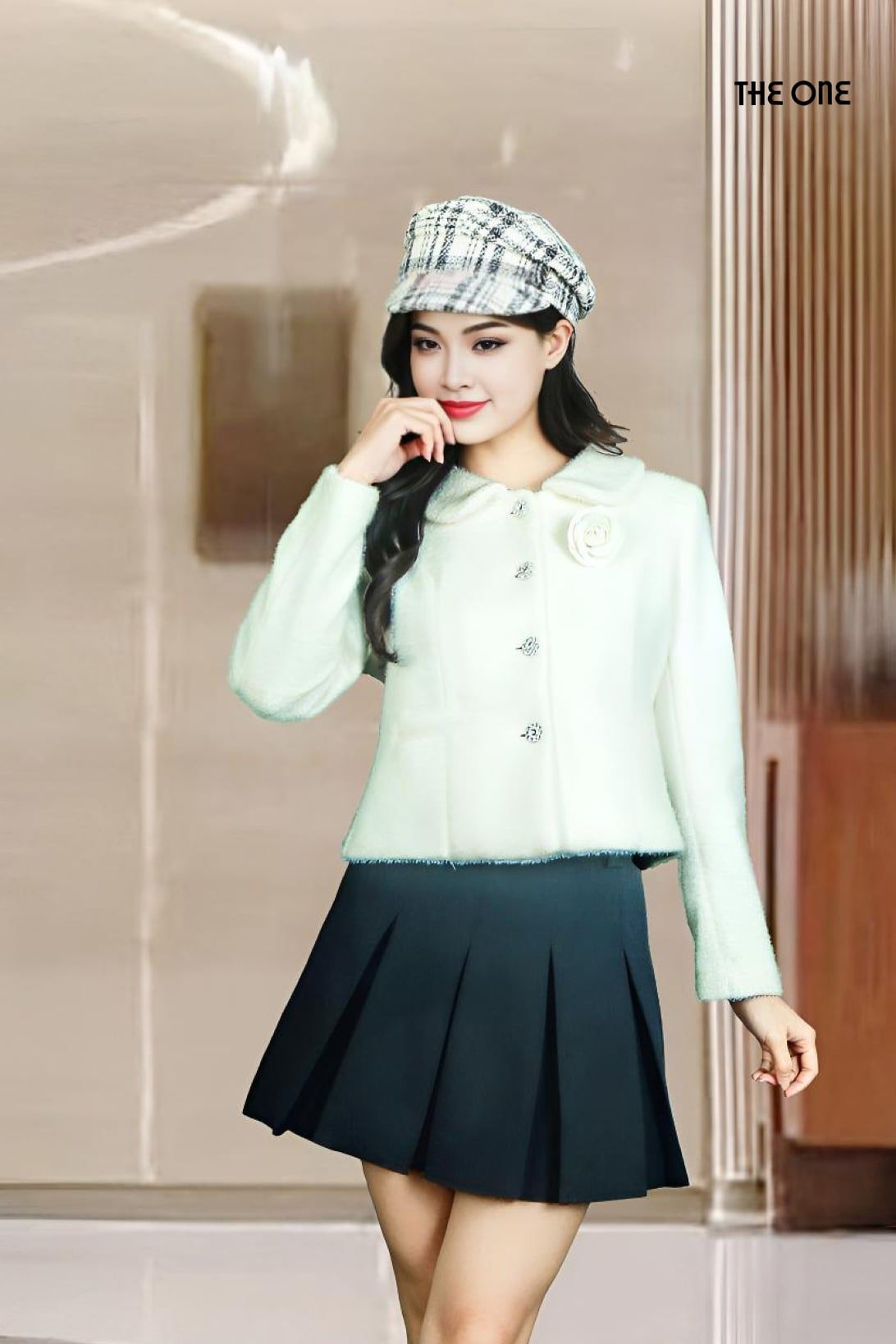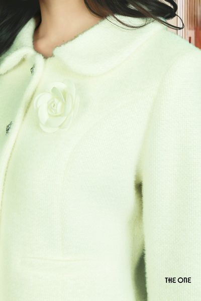 Áo vest dạ 2 lớp tay dài dạ len lông thỏ trắng cổ sen tròn đính hoa
