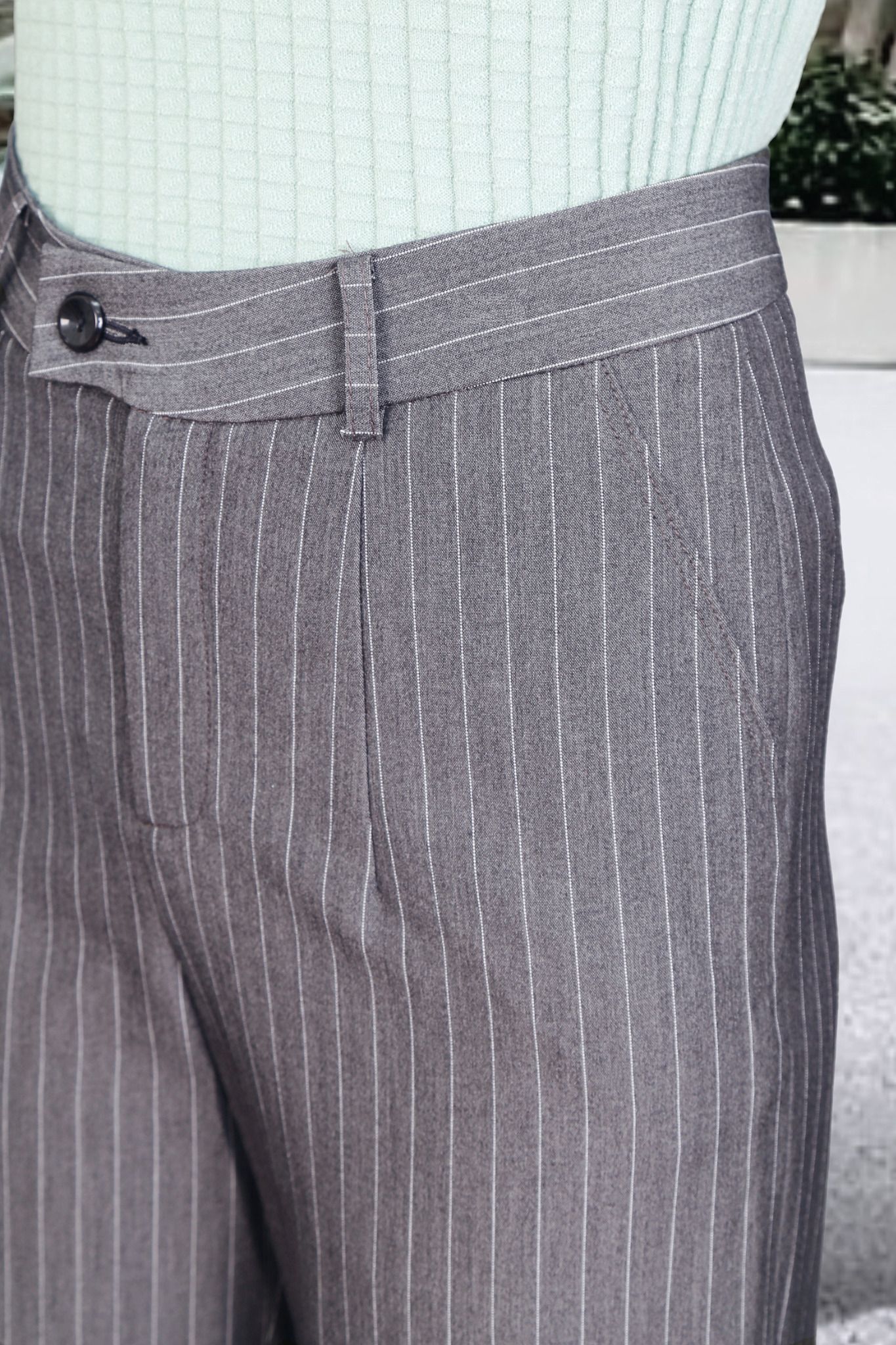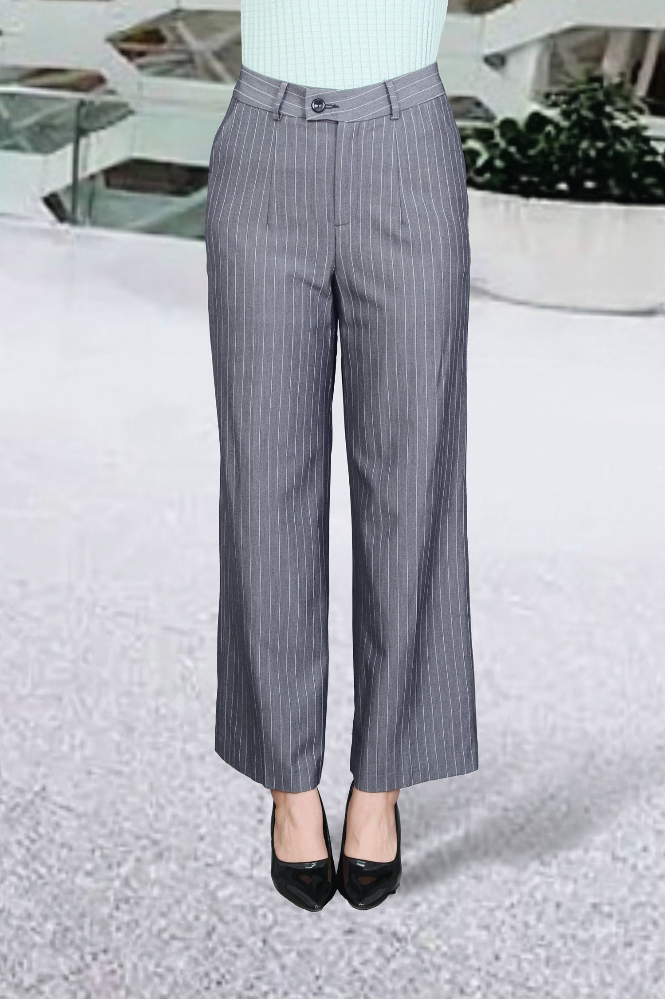 Quần ống suông kẻ ghi đậm li trước túi chéo