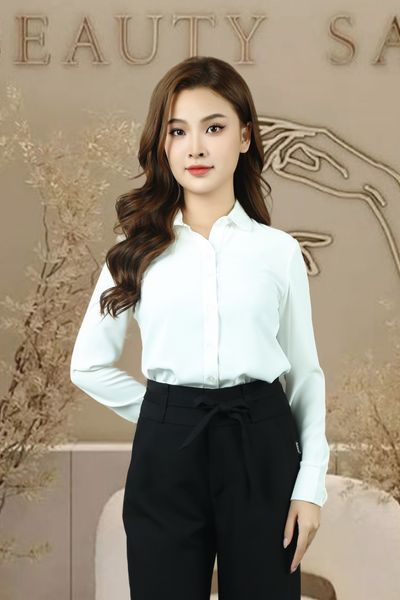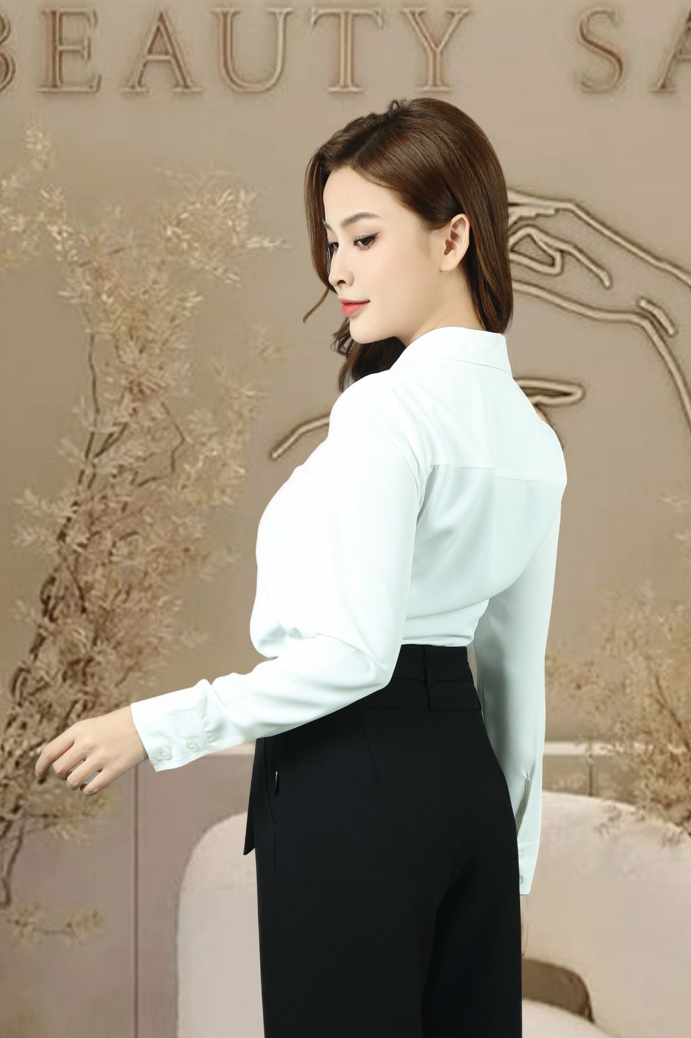 Áo sơ mi tay dài nhuyễn trắng cổ đức tròn