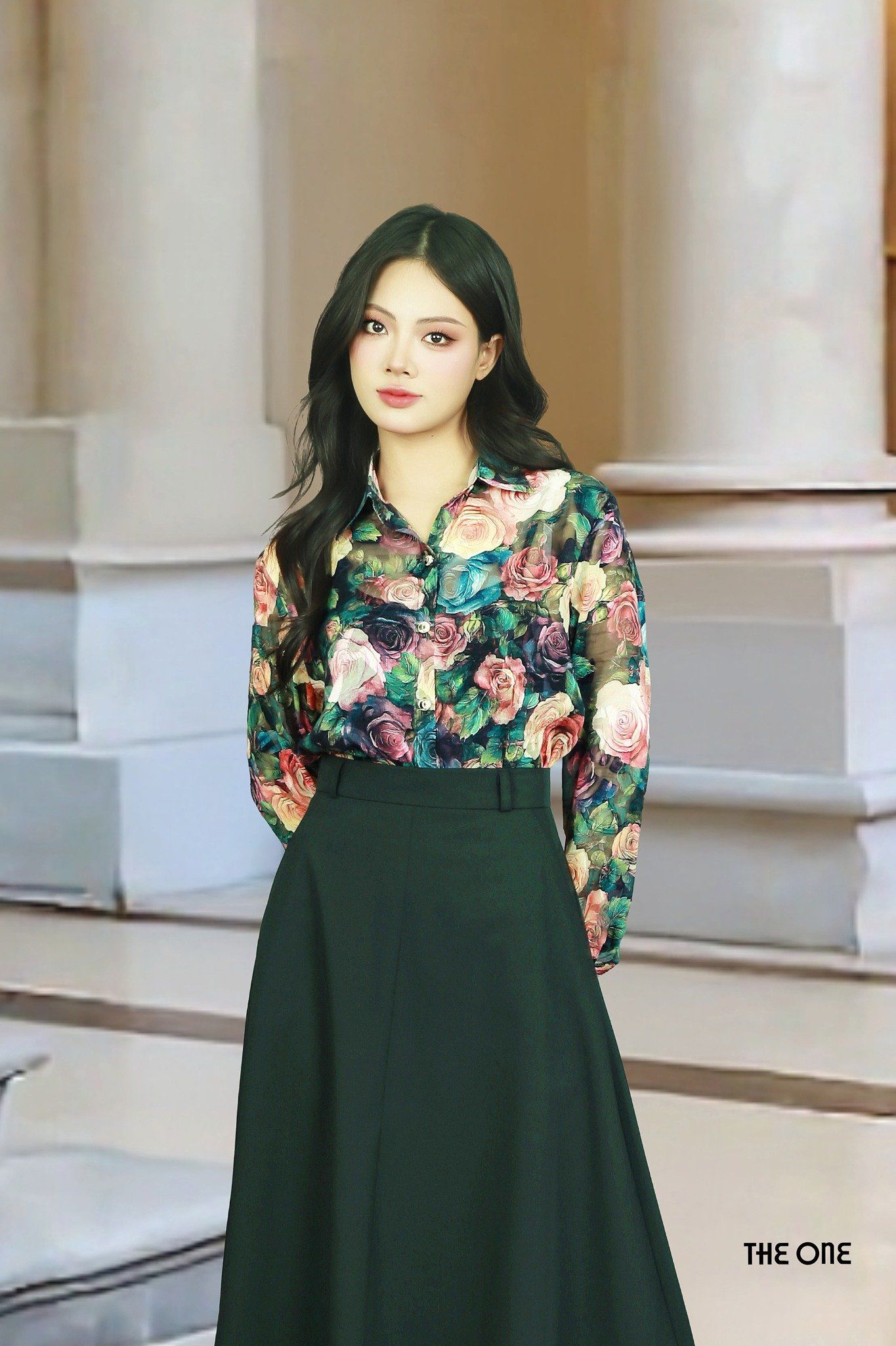 Áo sơ mi tay dài cổ đức tơ Nhật màu loang tím