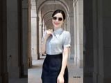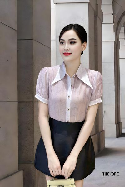 Áo sơ mi tay cộc đũi Nhật trắng tím cổ đức croptop tay bồng