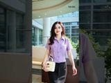 Áo sơ mi tay cộc tơ Nhật hồng đậm cổ đức croptop nắp túi