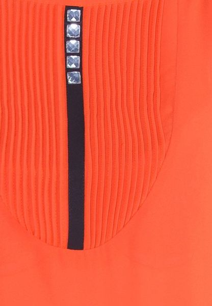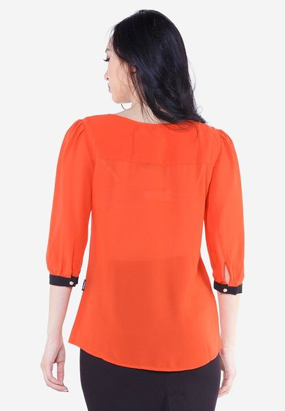 Áo sơ mi chiffon cam tay lỡ cổ tròn mí ngực đính đá