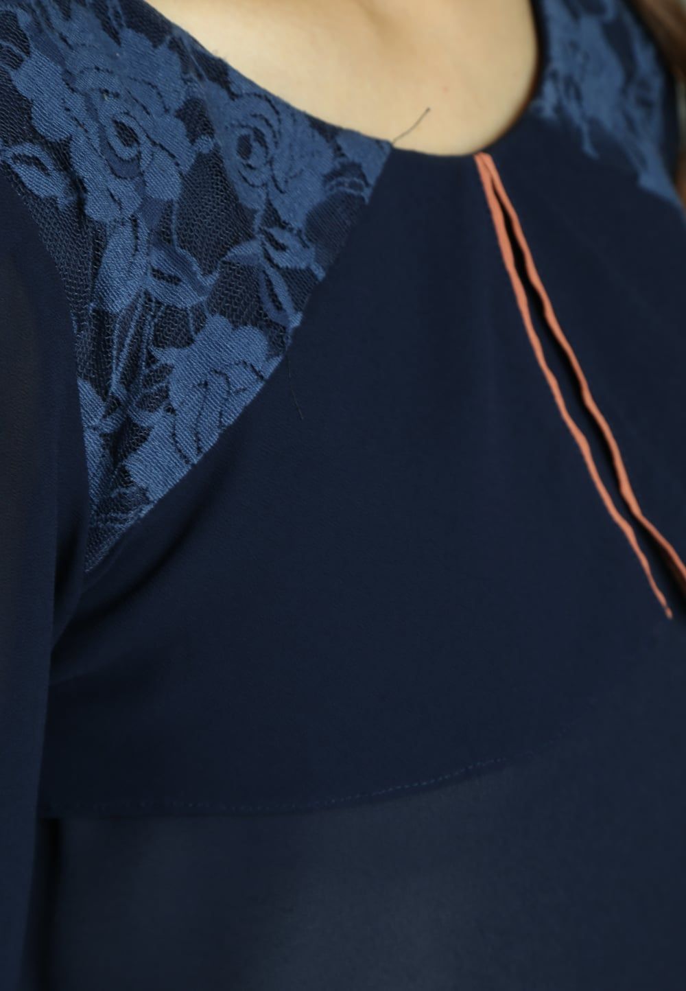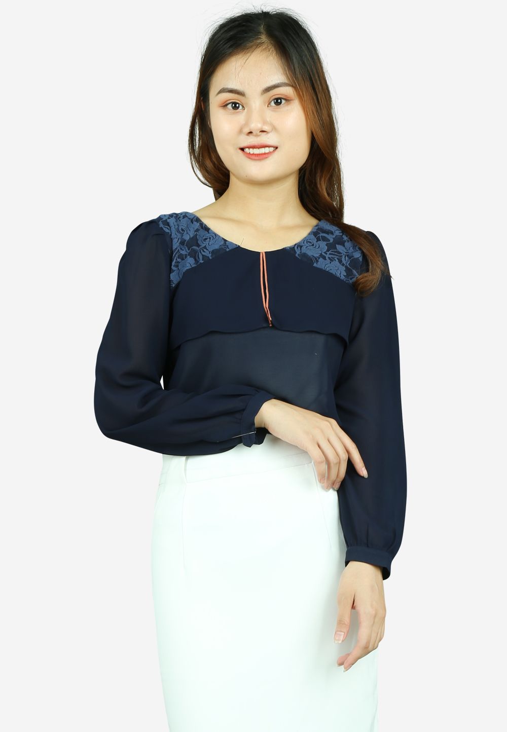 Áo sơ mi chiffon tím than tay dài yếm xẻ ren vai