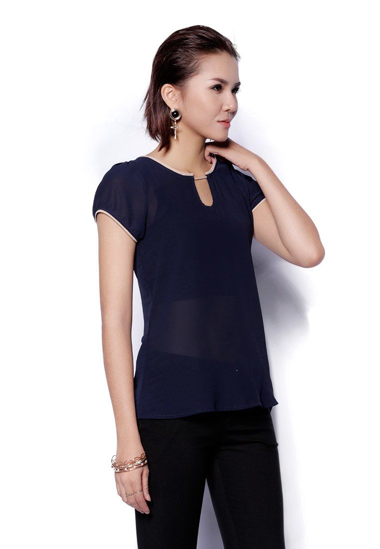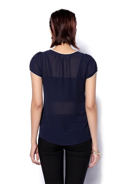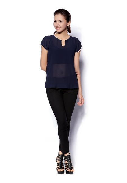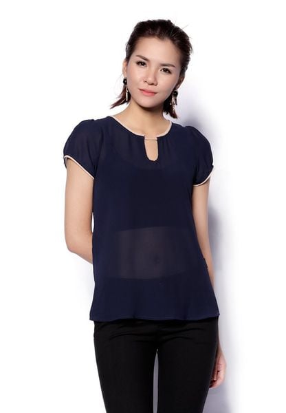 Áo sơ mi chiffon tím than tay cộc dây tết