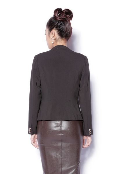Áo vest thô đen tay dài cổ tàu lệch lé phi