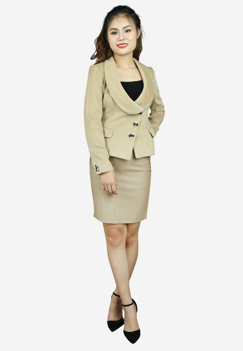 Áo khoÁC dạ ngắn 2 lớp tay dài dạ tuyết nâu cổ sam lệch 3 khuy