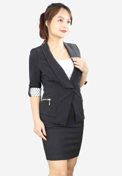 Áo vest đen dài siêu nhẹ cổ sam vuông khuy bấm