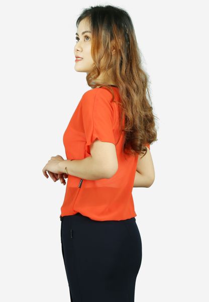 Áo sơ mi chiffon cam tay cánh dơi cổ tròn mí ngực