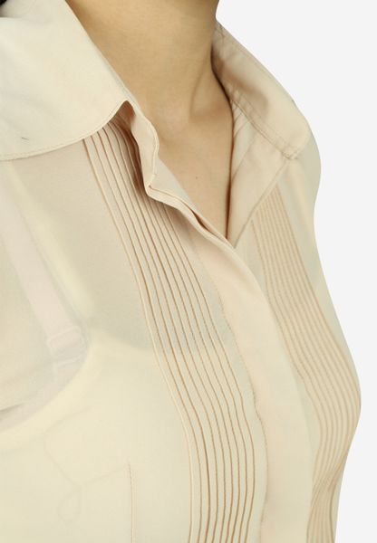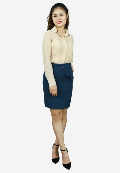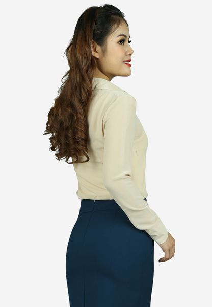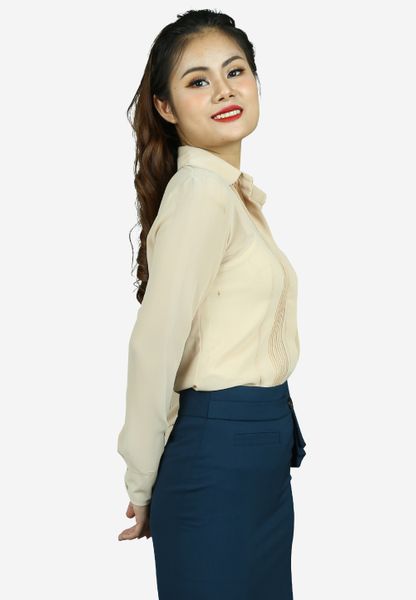 Áo sơ mi chiffon be tay dài cổ đức mí dọc thân