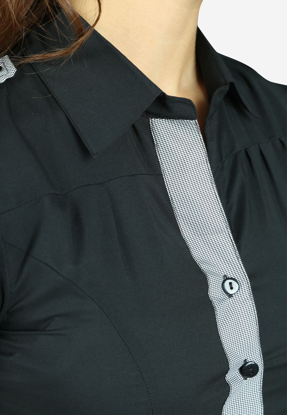 Áo sơ mi thô đen tay cộc cổ đức cravat cá vai