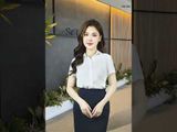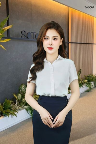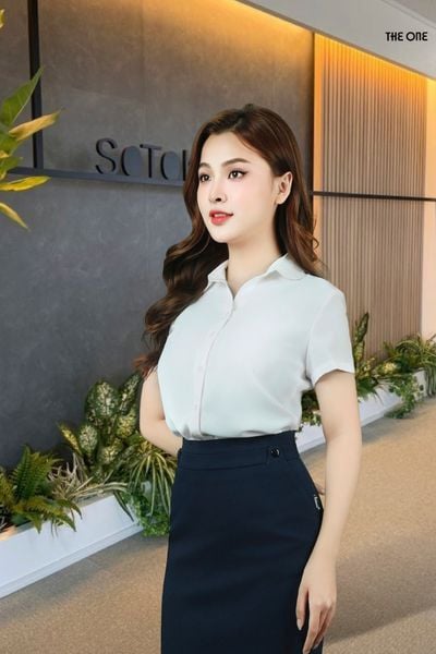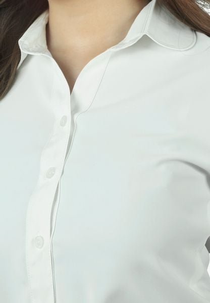 Áo sơ mi tay cộc lụa trắng dáng suông cổ đức tròn tay tròn