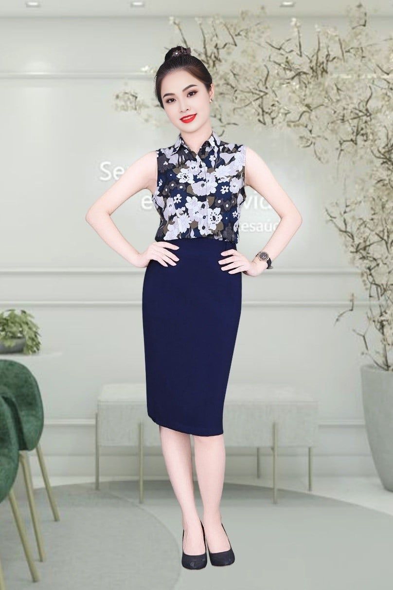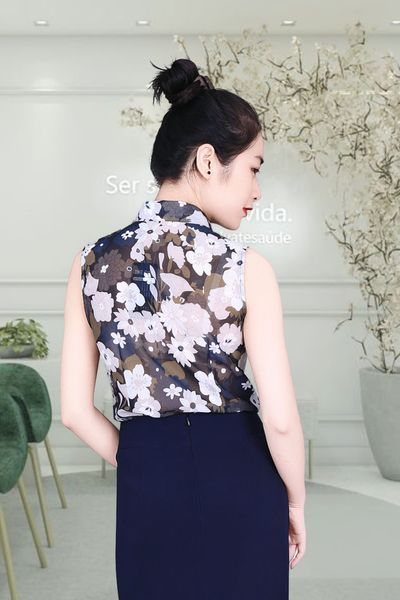 Áo sơ mi sát nách vải voan hoa trắng rêu dáng ôm cổ đức