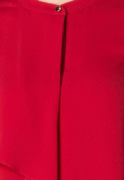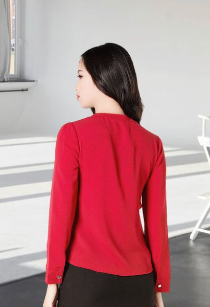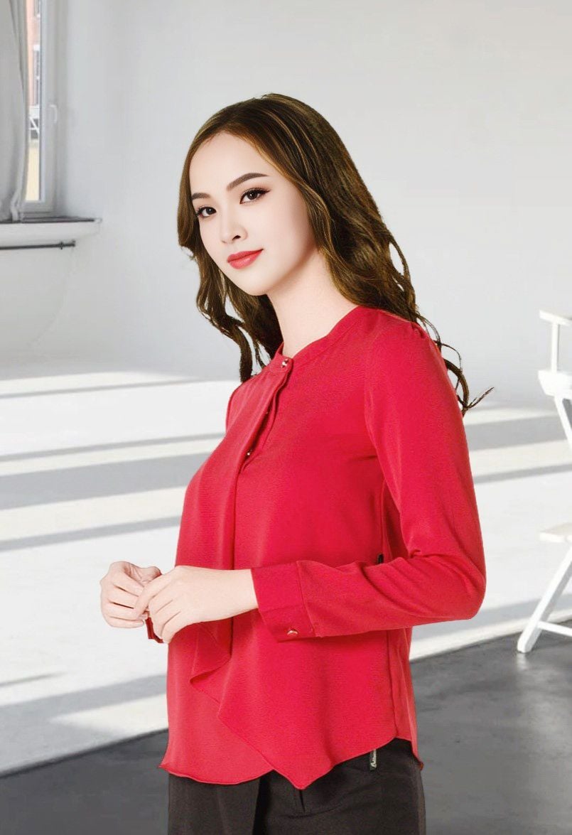 Áo sơ mi tay dài chéo đỏ đô cổ tàu bổ trụ vạt trước xếp li