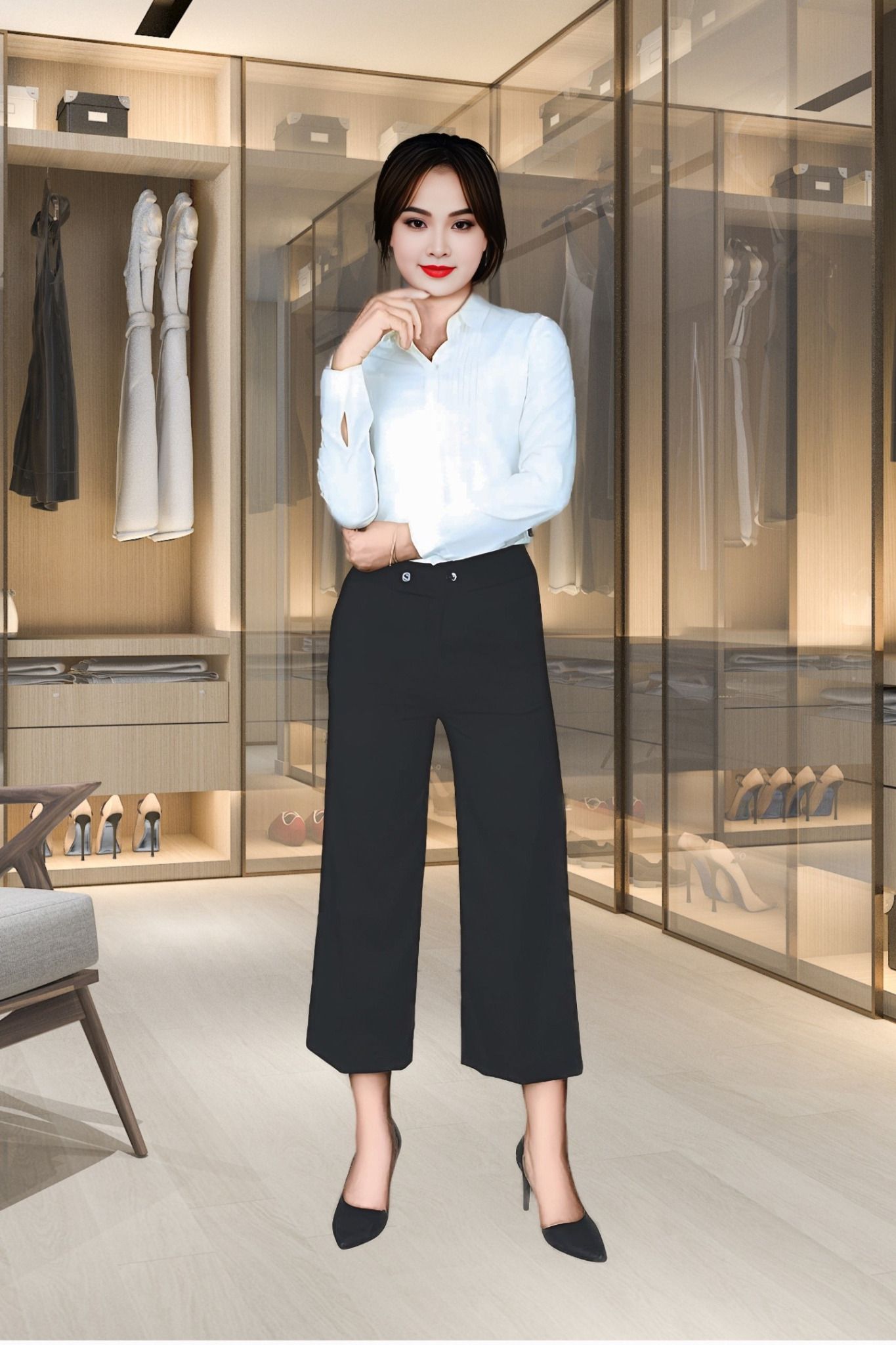 Áo sơ mi tay dài với chất liệu vải nhuyễn trắng sẽ là lựa chọn hoàn hảo cho những người yêu thích sự đơn giản và thanh lịch. Chất liệu vải nhuyễn giúp áo sơ mi mềm mại, thoáng mát và dễ chịu khi mặc, đặc biệt là trong những ngày hè nóng bức. Cổ áo đức tròn là điểm nhấn của chiếc áo sơ mi này, giúp tạo nên phong cách trẻ trung, hiện đại và dễ dàng phối đồ. Áo sơ mi tay dài giúp che chắn tay và tạo cảm giác ấm áp hơn trong những ngày se lạnh. Thân trước của áo sơ mi được xếp 6 li, tạo nên điểm nhấn độc đáo và thu hút sự chú ý của người nhìn. Áo sơ mi này có thể phối cùng quần tây, quần jean hoặc chinos để tạo nên phong cách lịch sự, trang nhã hoặc phong cách trẻ trung, năng động tùy thuộc vào cách phối đồ của người mặc. Với thiết kế đơn giản nhưng không kém phần tinh tế, chiếc áo sơ mi tay dài này sẽ là một trong những item không thể thiếu trong tủ đồ của bạn.