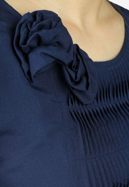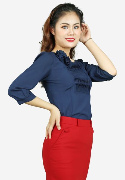 Áo sơ mi voan tím than tay lỡ cổ tròn xếp ngực hoa cổ
