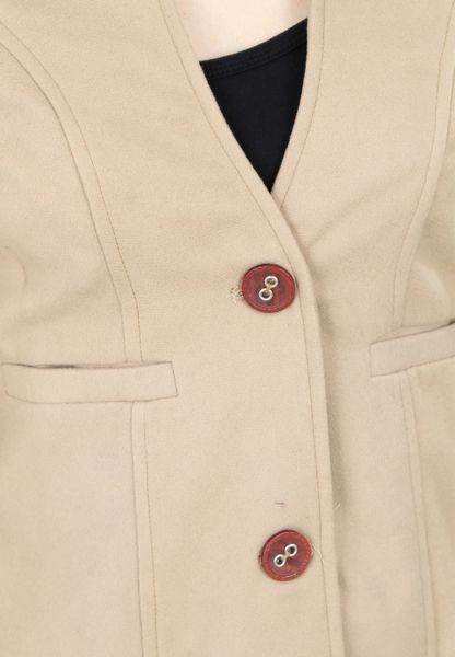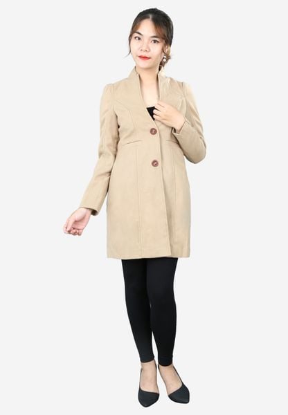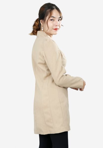 Áo măng tô dài 2 lớp dạ be đậm tay dài cổ tàu 2 khuy