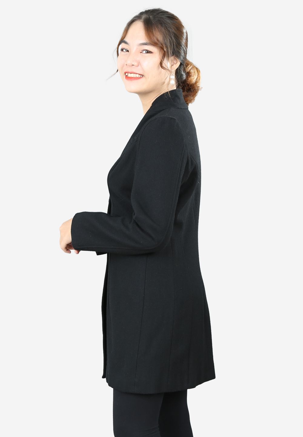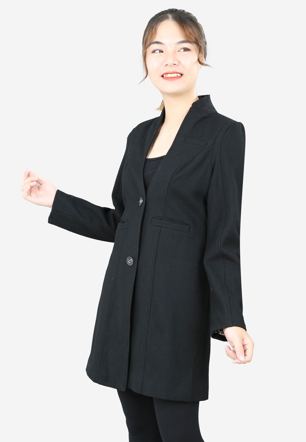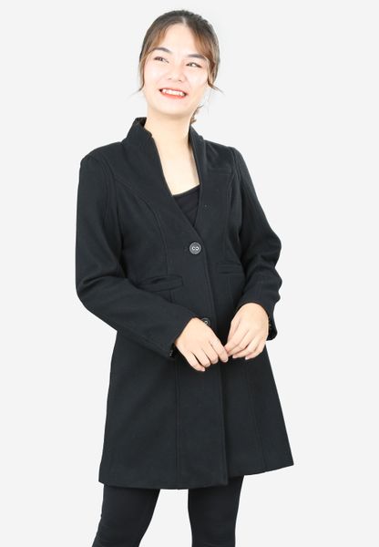 Áo măng tô dài 2 lớp dạ đen tay dài cổ tàu 2 khuy