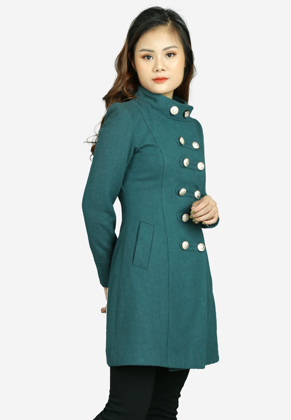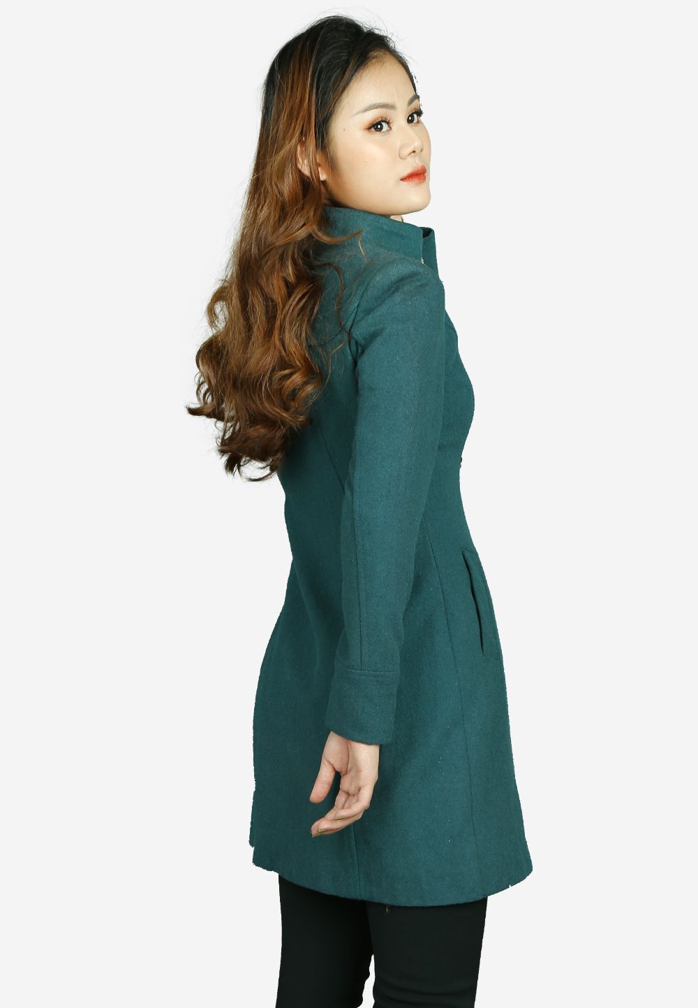 Áo măng tô dạ xanh đậm cổ tàu 5 khuyết dây
