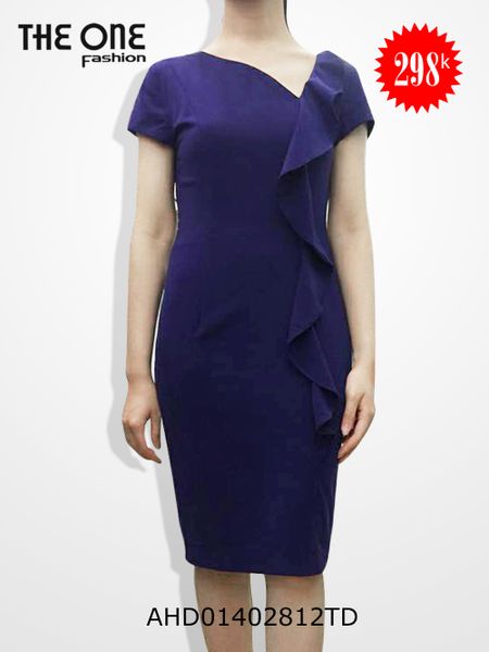 Đầm 2 lớp tay cộc vải tím đậm cổ tim bèo cổ dọc thân