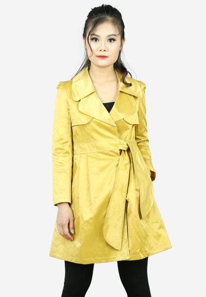 Áo măng tô gờ tô vàng xòe thắt đai nơ
