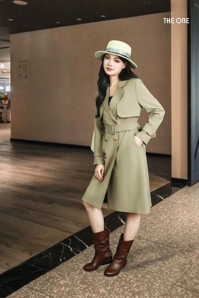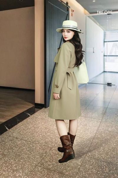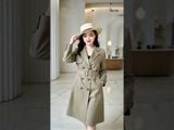 Áo măng tô tay dài 2 lớp kaki be cổ 2 ve 2 hàng khuy đồng dây đai