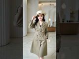 Áo măng tô tay dài 2 lớp kaki nâu nhạt cổ 2 ve 2 hàng khuy đồng dây đai