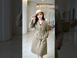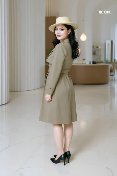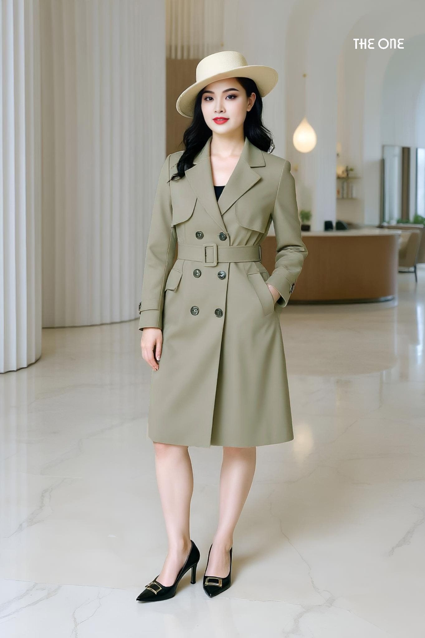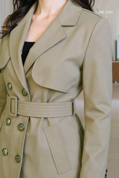 Áo măng tô tay dài 2 lớp kaki nâu nhạt cổ 2 ve 2 hàng khuy dây đai