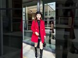 Áo măng tô tay dài dạ lông cừu nâu cổ B túi cong dáng ngắn