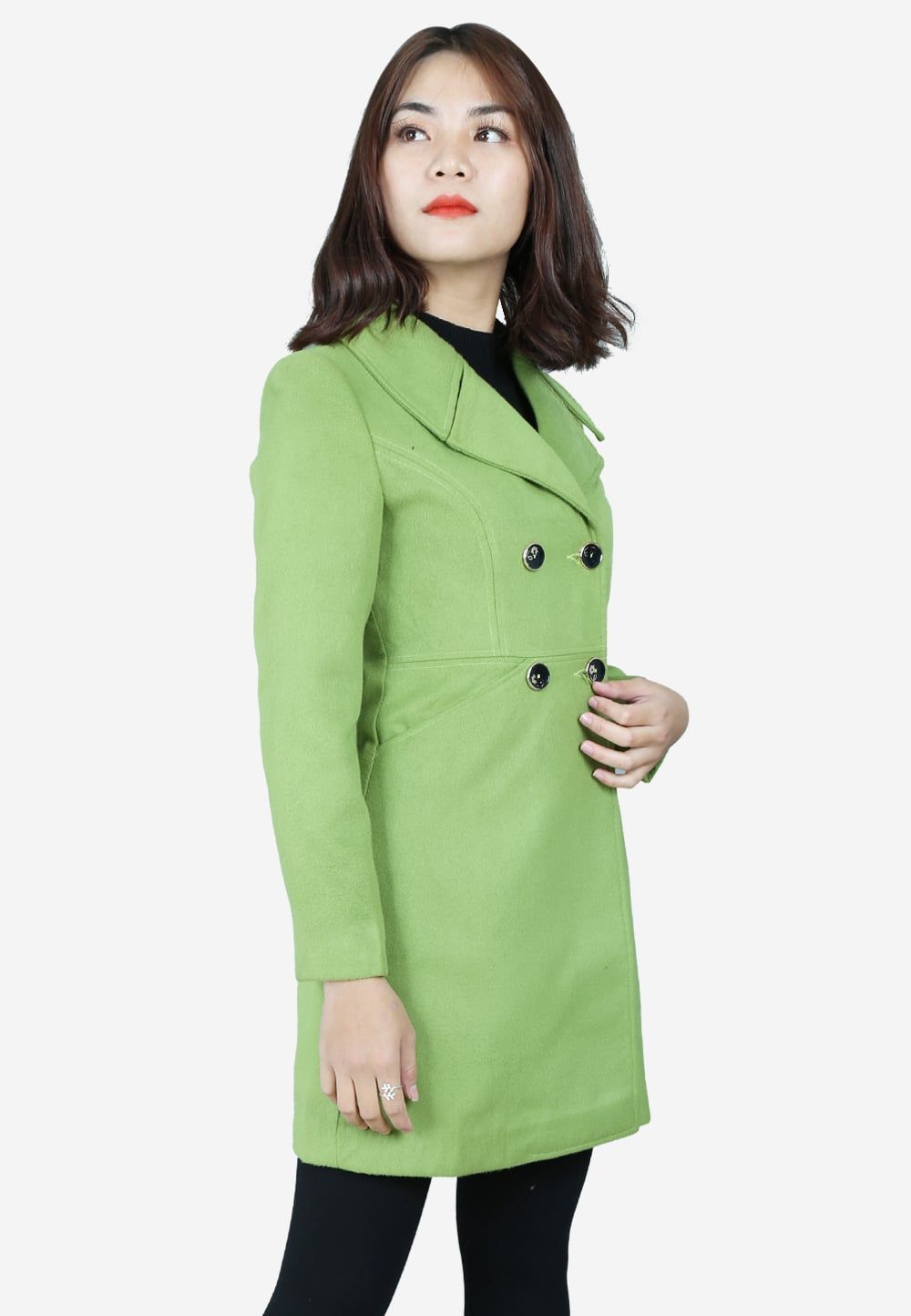 Áo măng tô 2 lớp tay dài dạ lì xanh cốm cổ bẻ 2 ve túi chéo