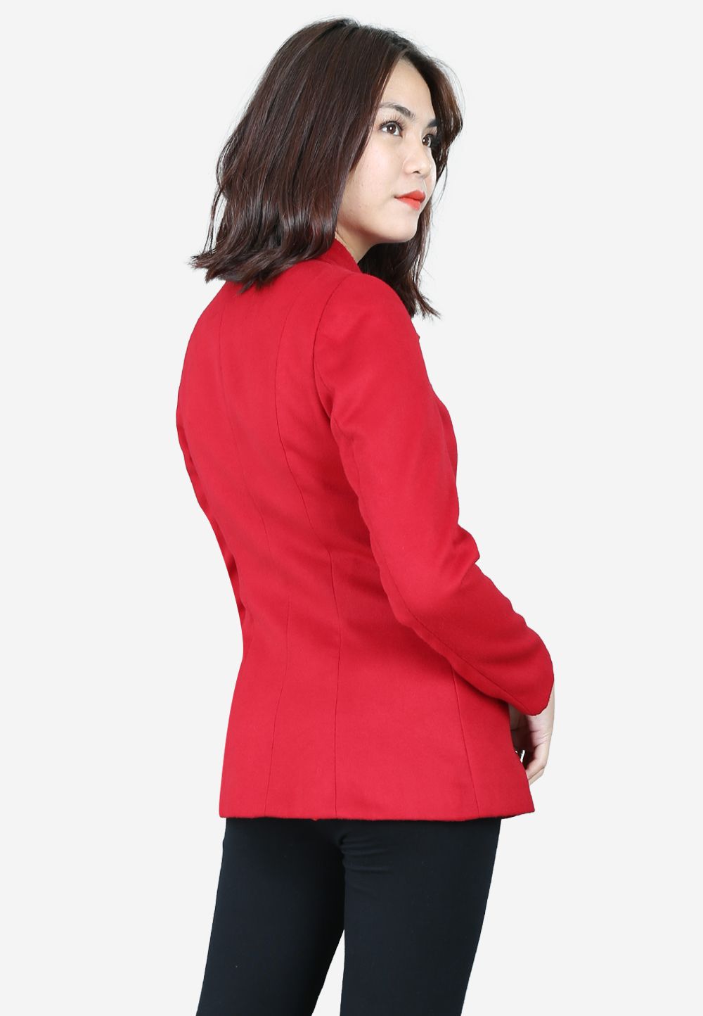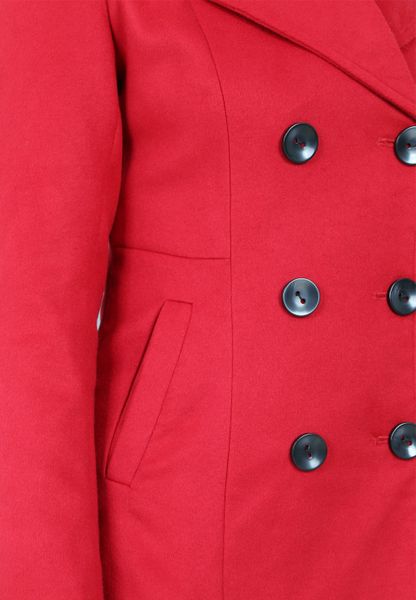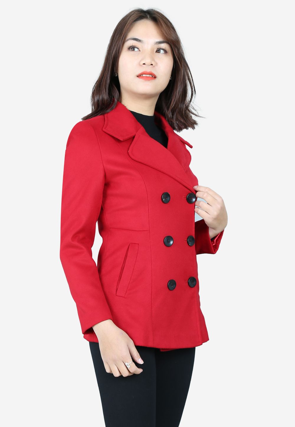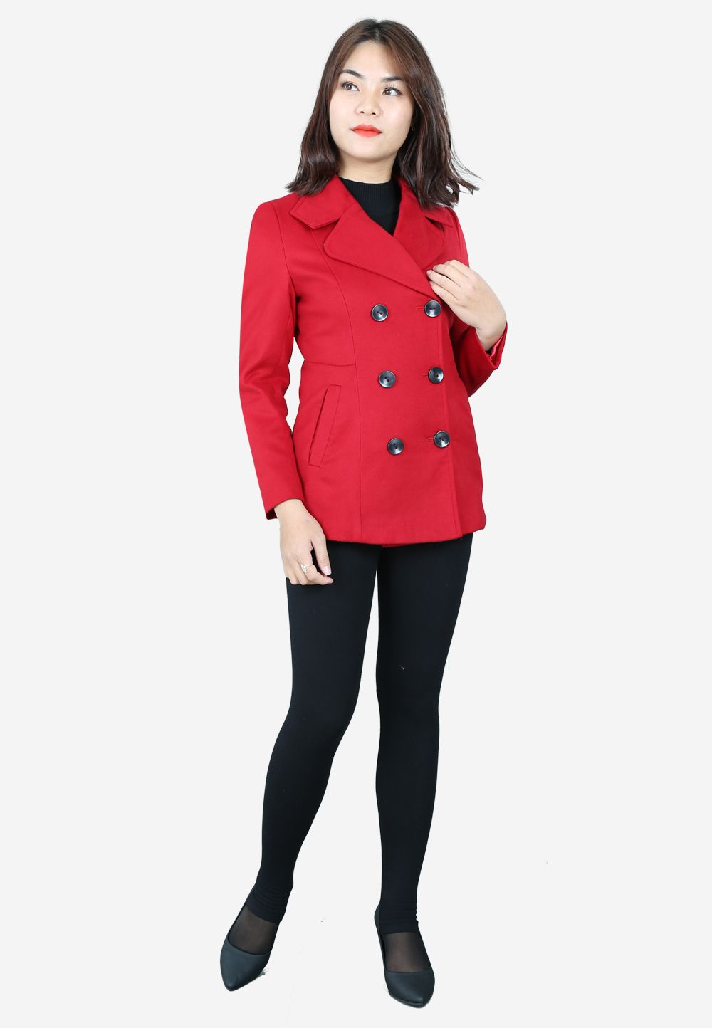 Áo măng tô dạ lì đỏ cổ 2 ve vuông 2 hàng khuy túi chéo