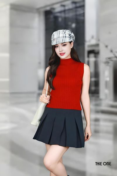 Áo len tăm sát nách đỏ đô cổ lọ 3F