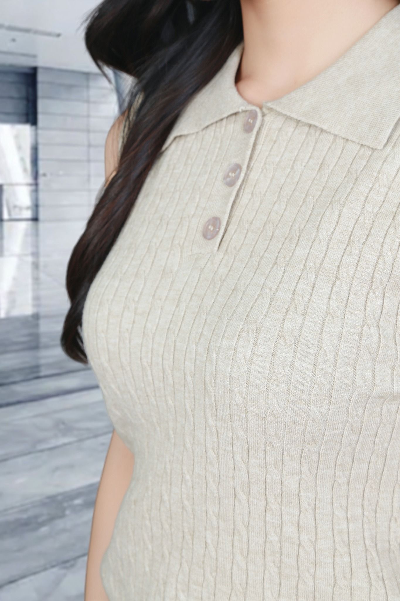 Áo len be đậm sát nách vặn thừng cổ bẻ cài khuy