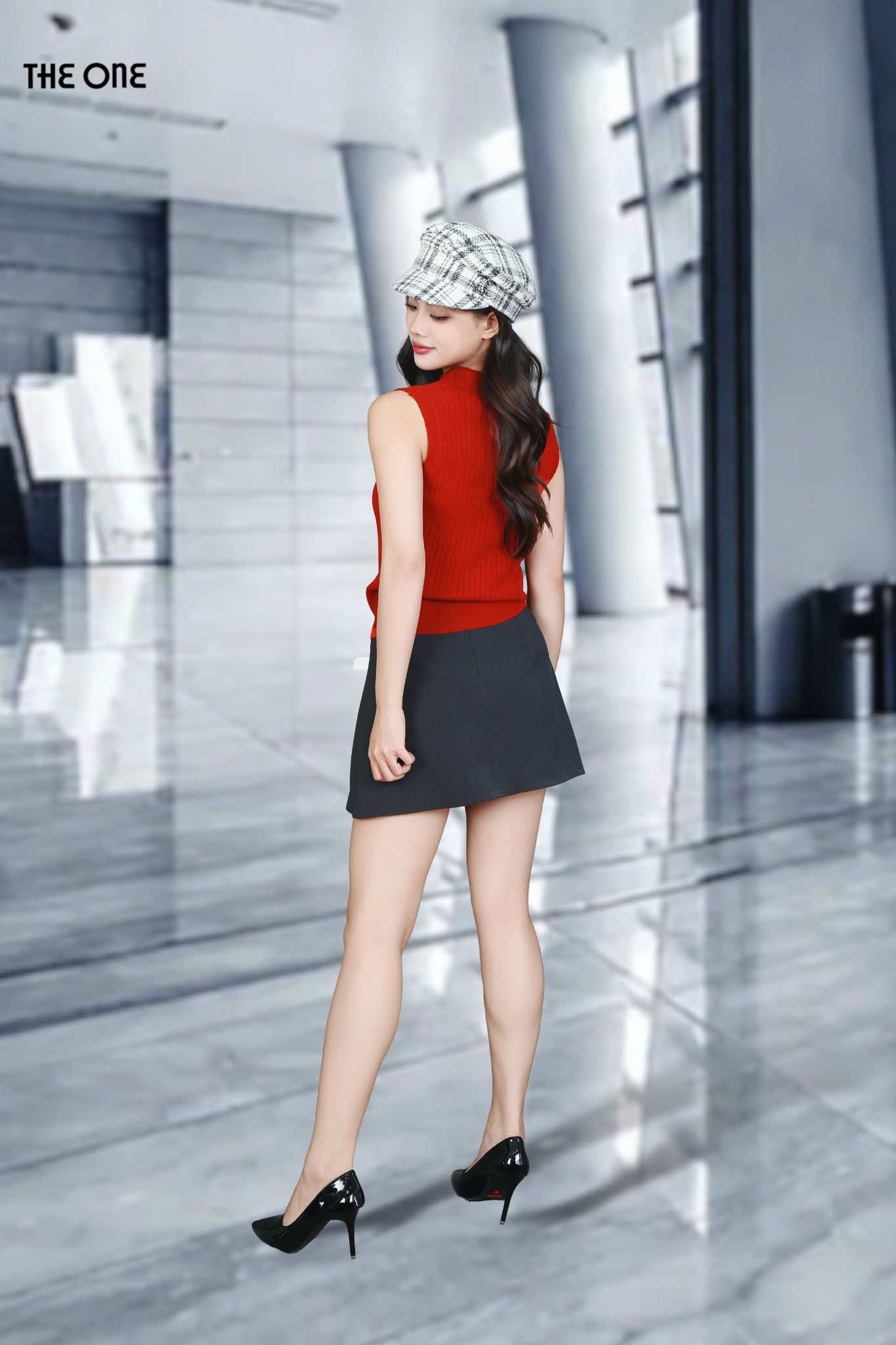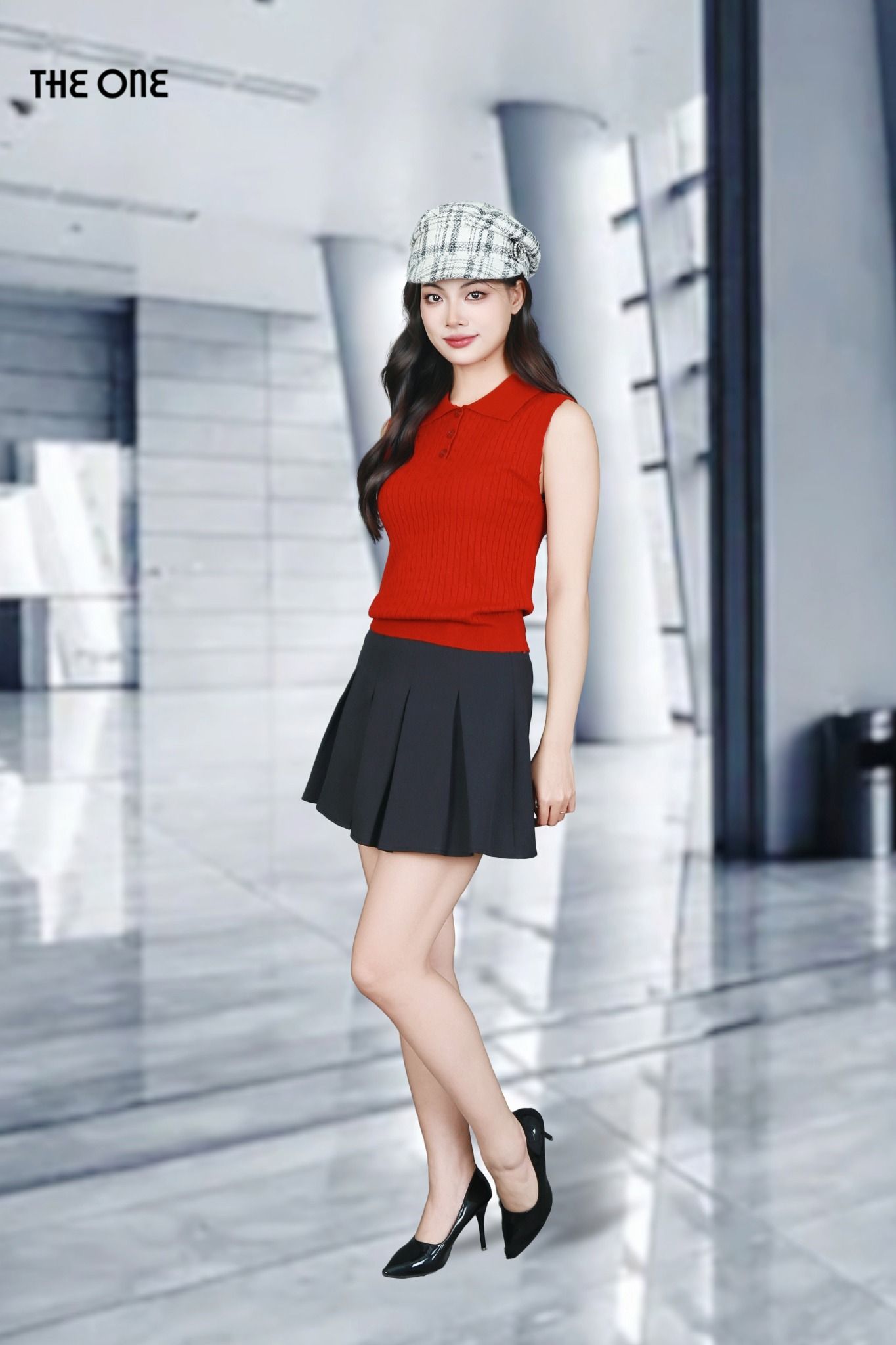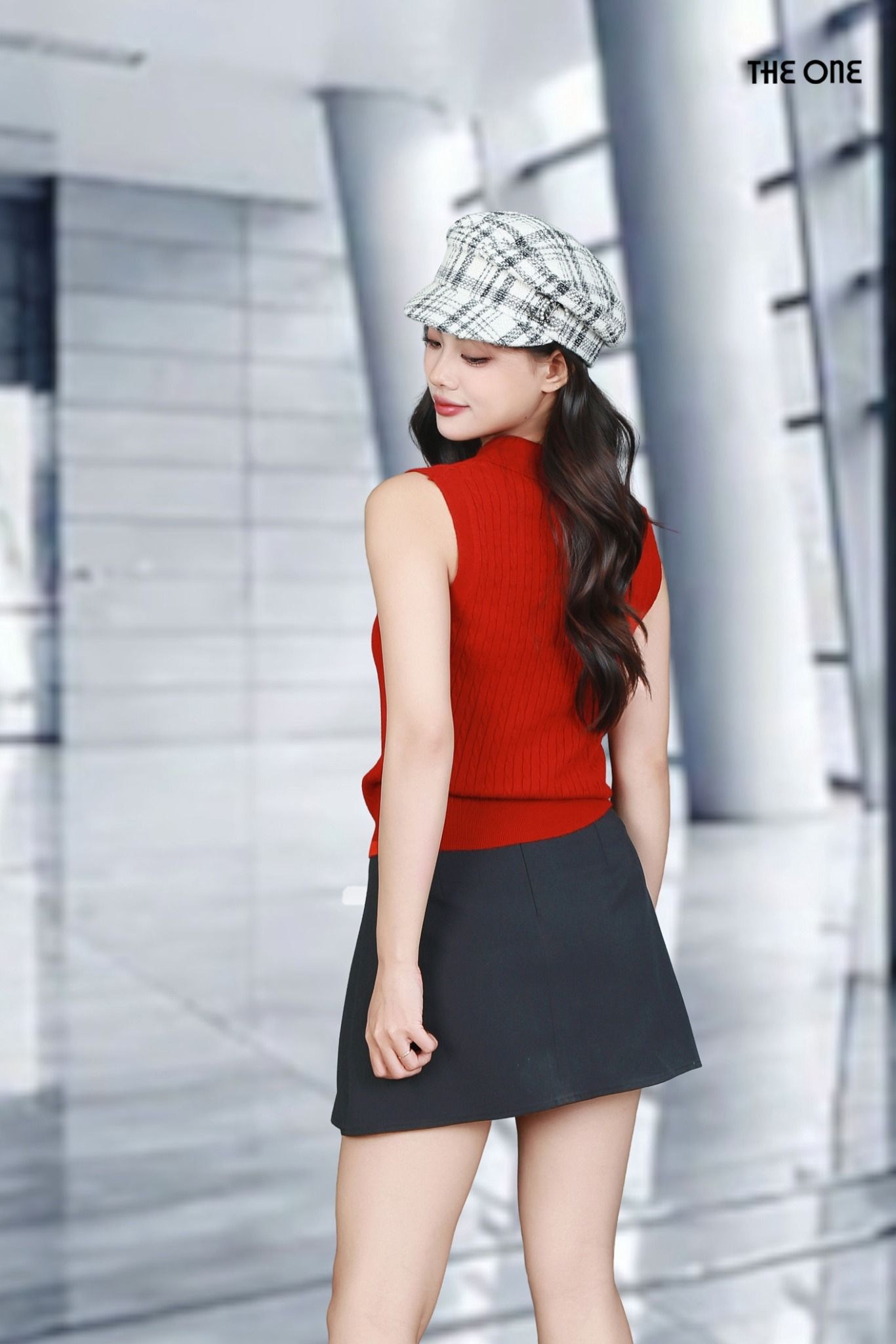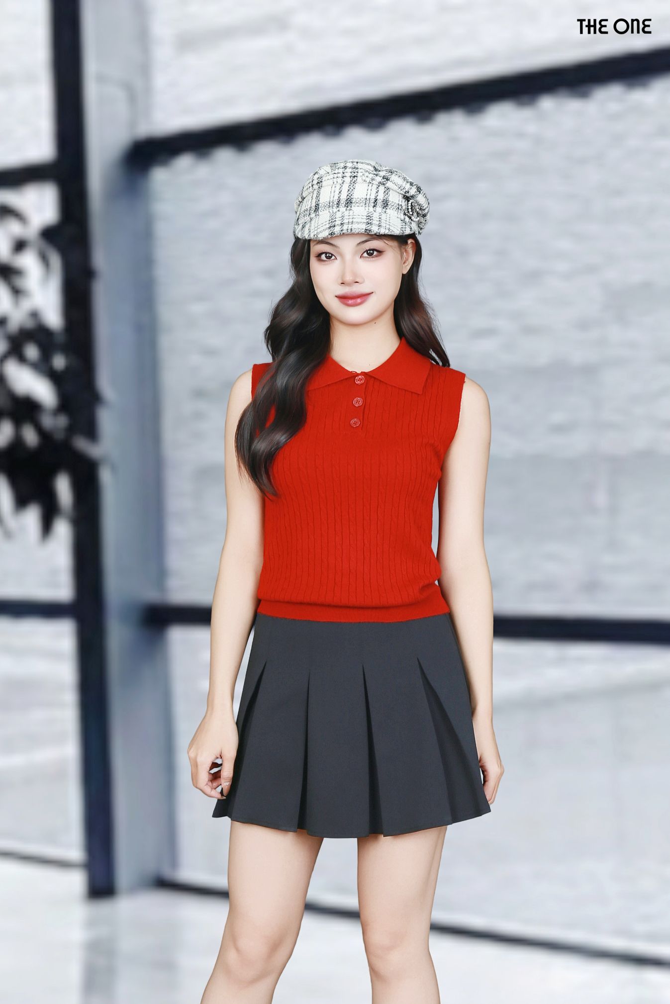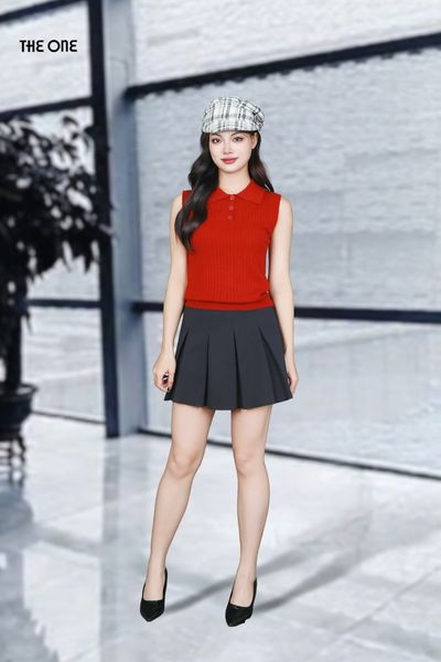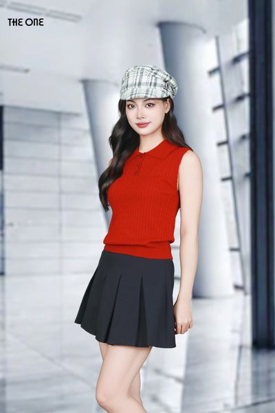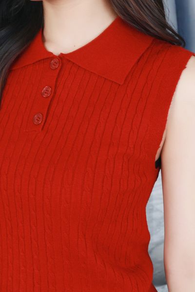 Áo len đỏ đậm sát nách vặn thừng cổ bẻ cài khuy