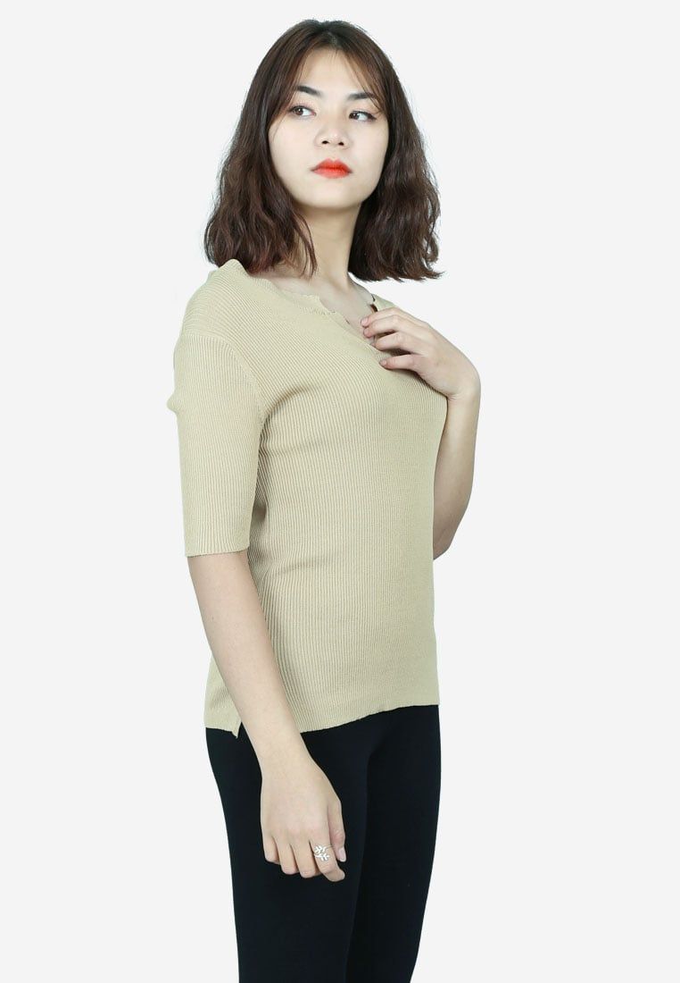 Áo len be tay lỡ dáng ôm cổ xẻ V