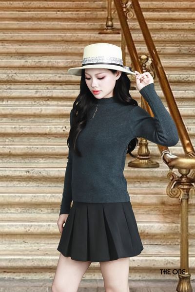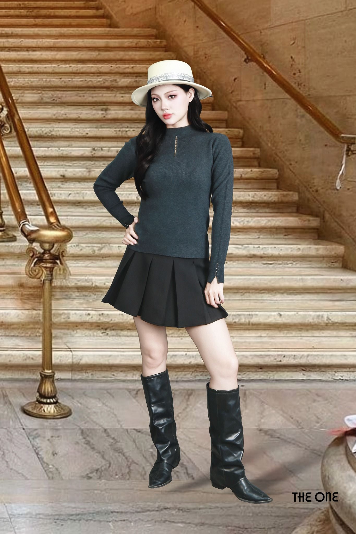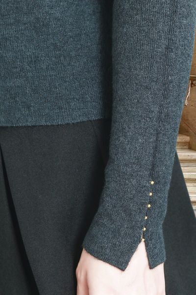 Áo len ghi đậm tay dài cổ 3cm khuy dọc cổ và tay