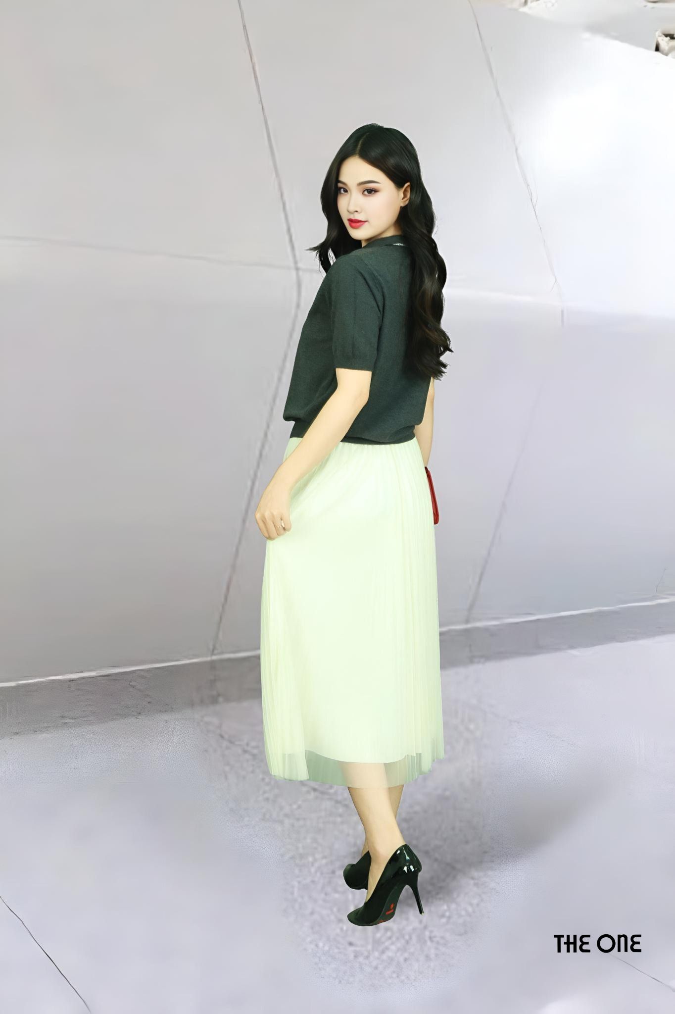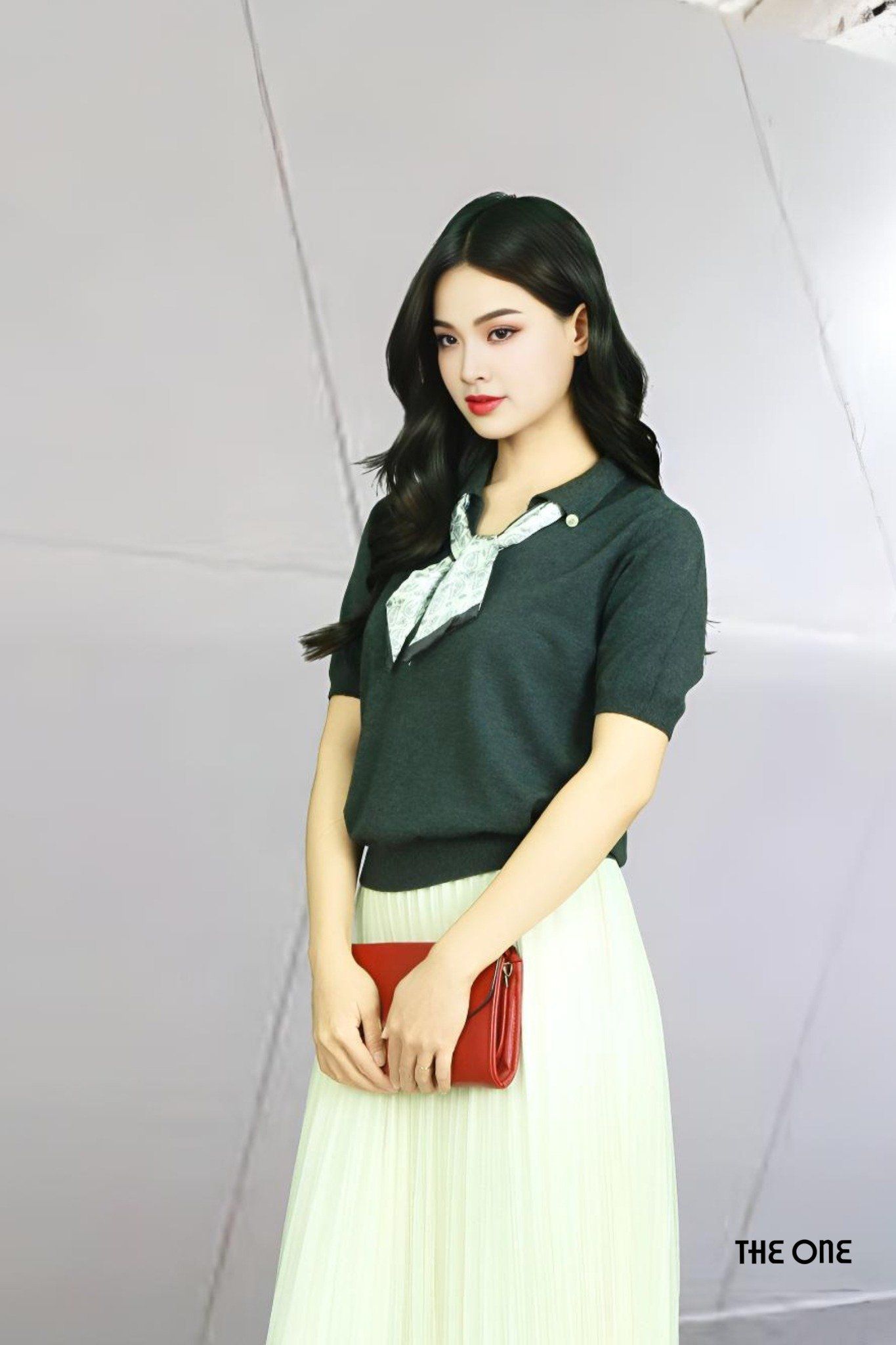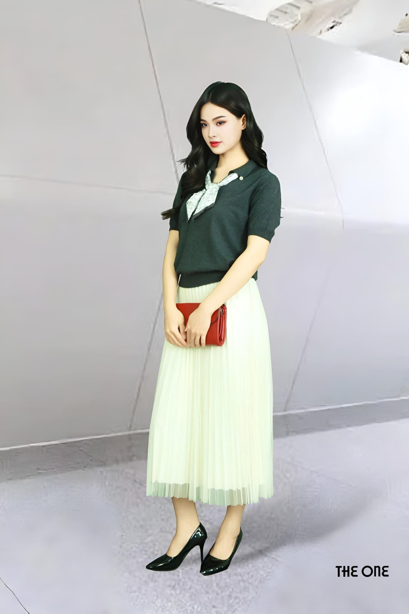 Áo len ghi đậm tay lỡ cổ đức đính khuy kèm khăn lụa