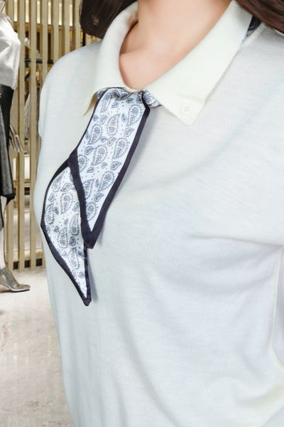 Áo len kem tay cộc cổ đức đính khuy vai liền kèm khăn lụa