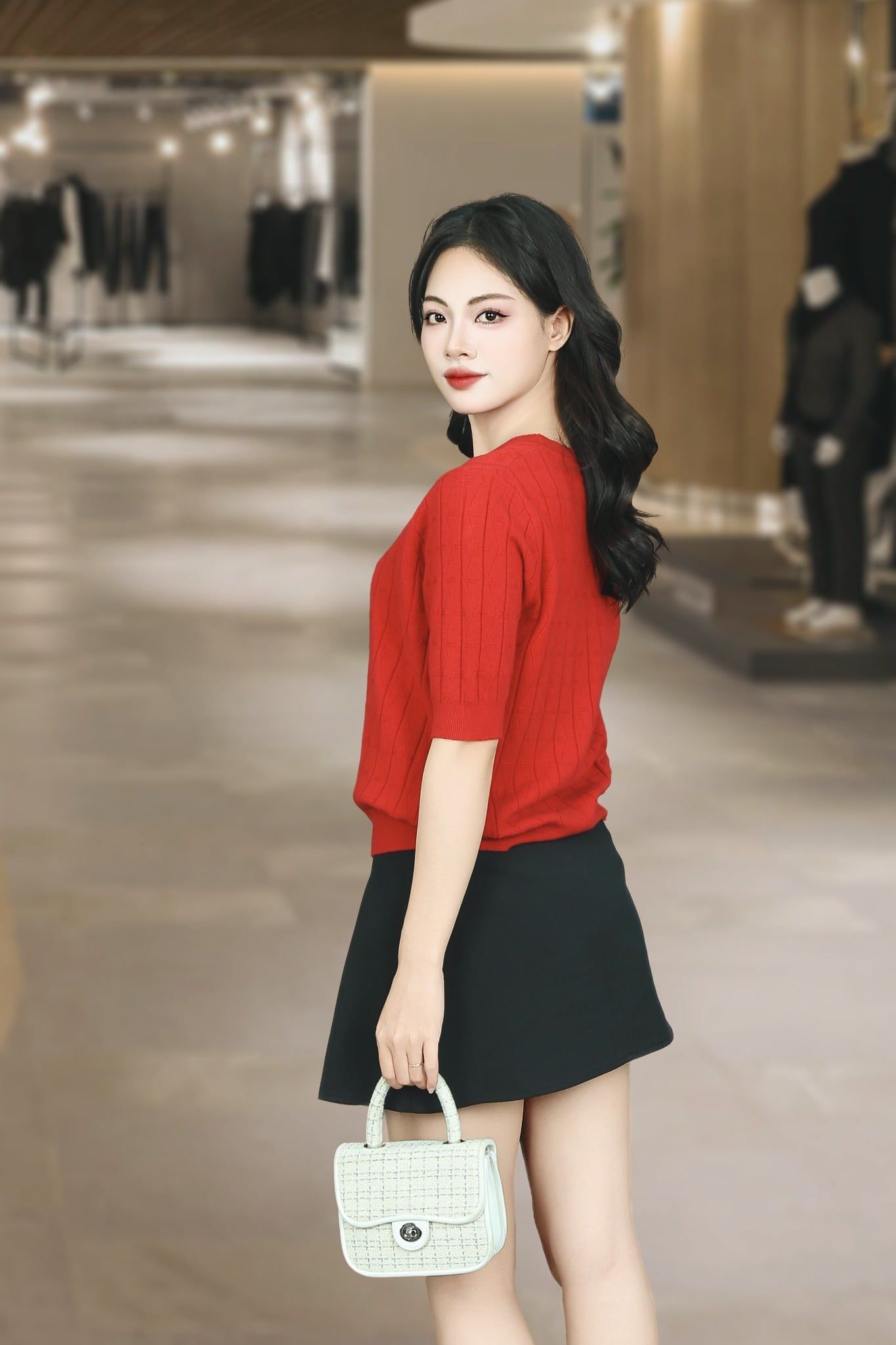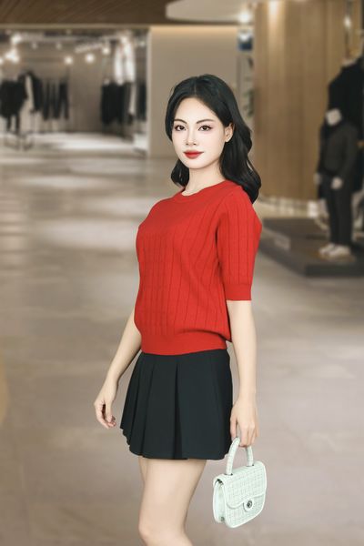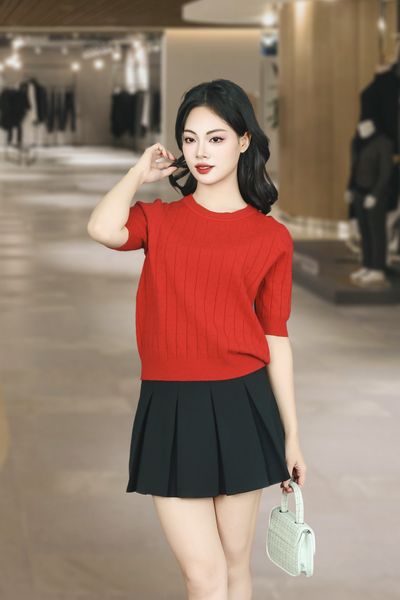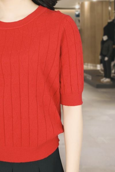 Áo len đỏ tay lỡ cổ tròn zic zắc