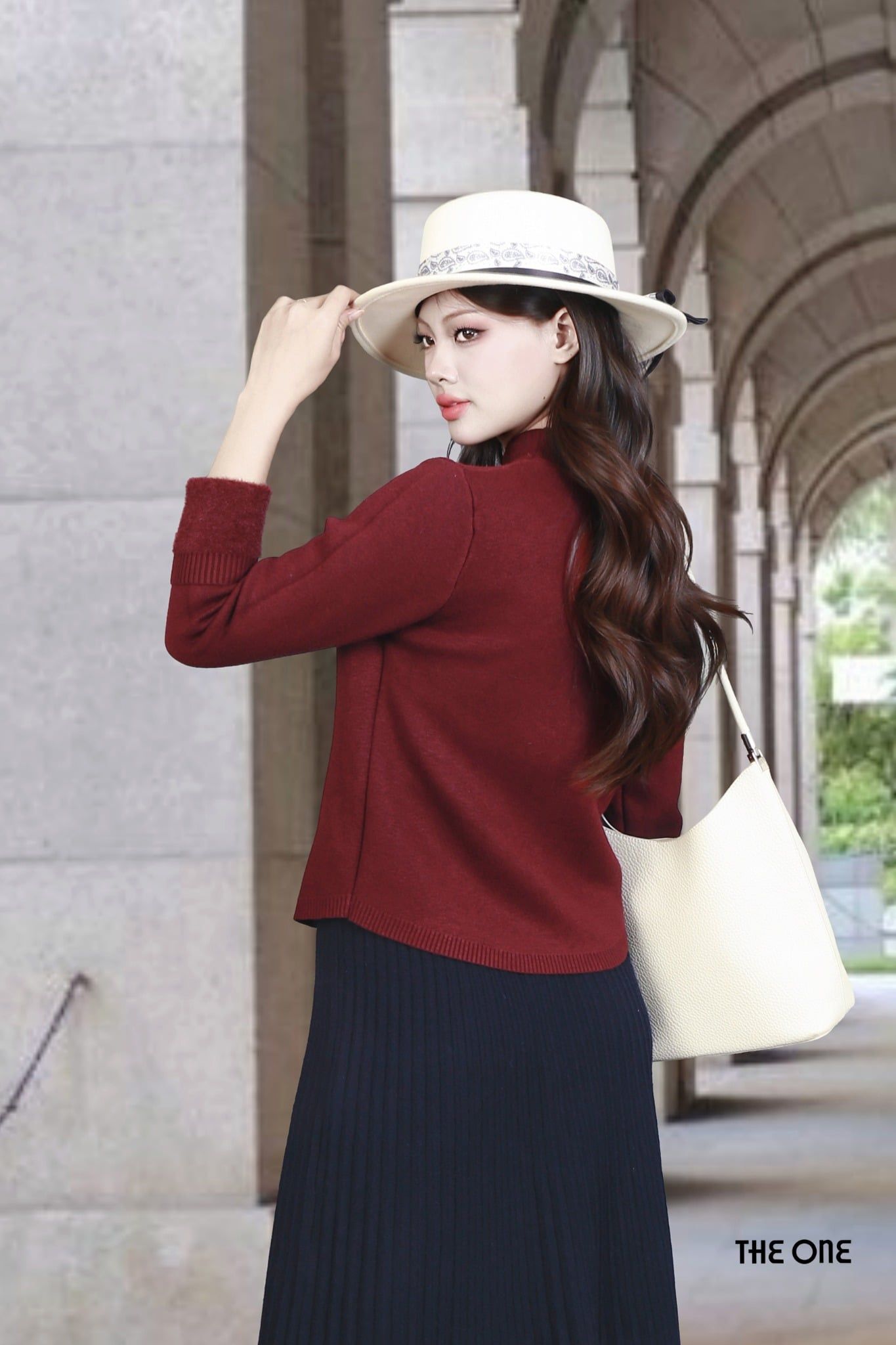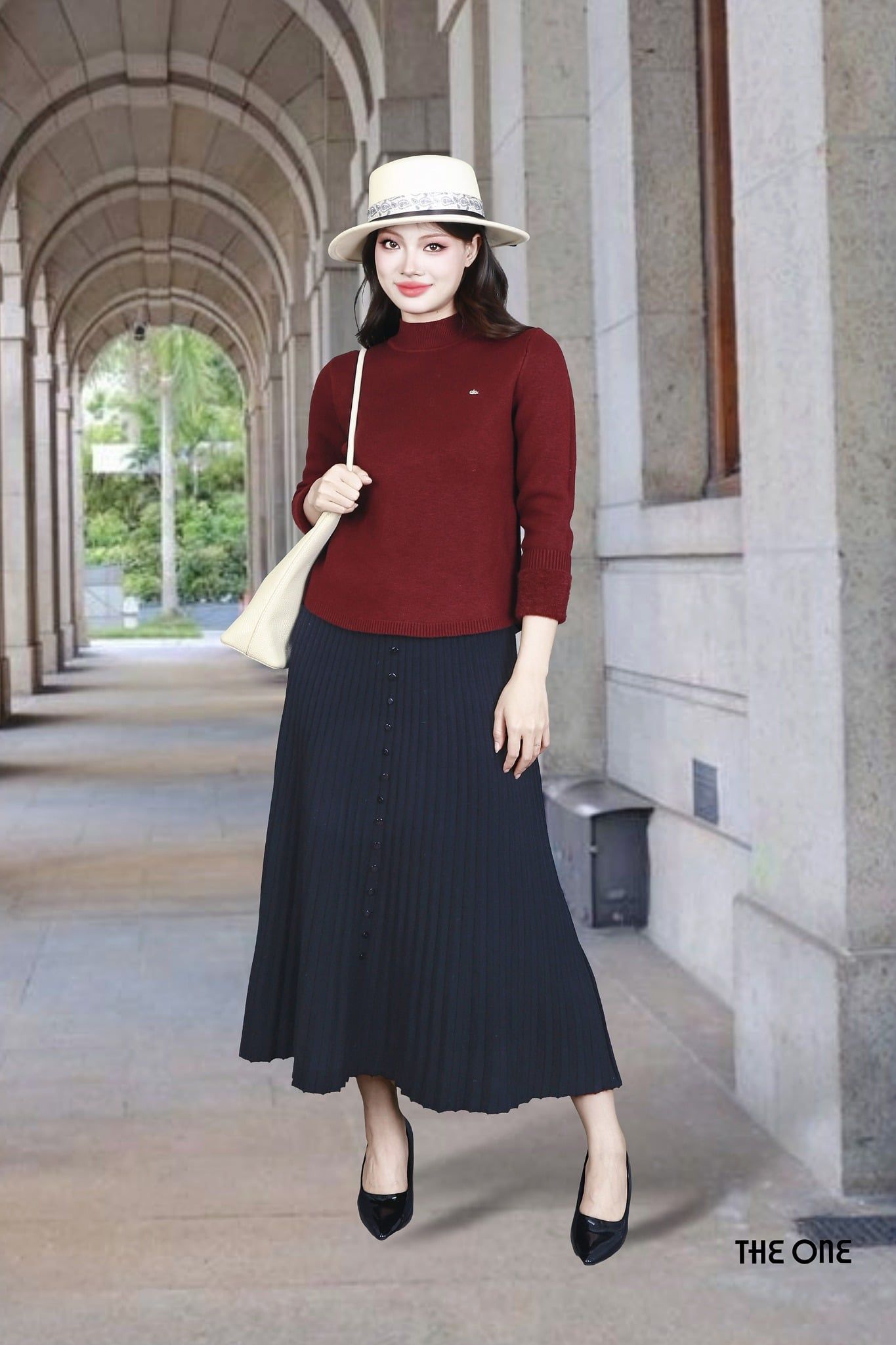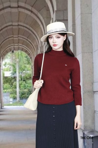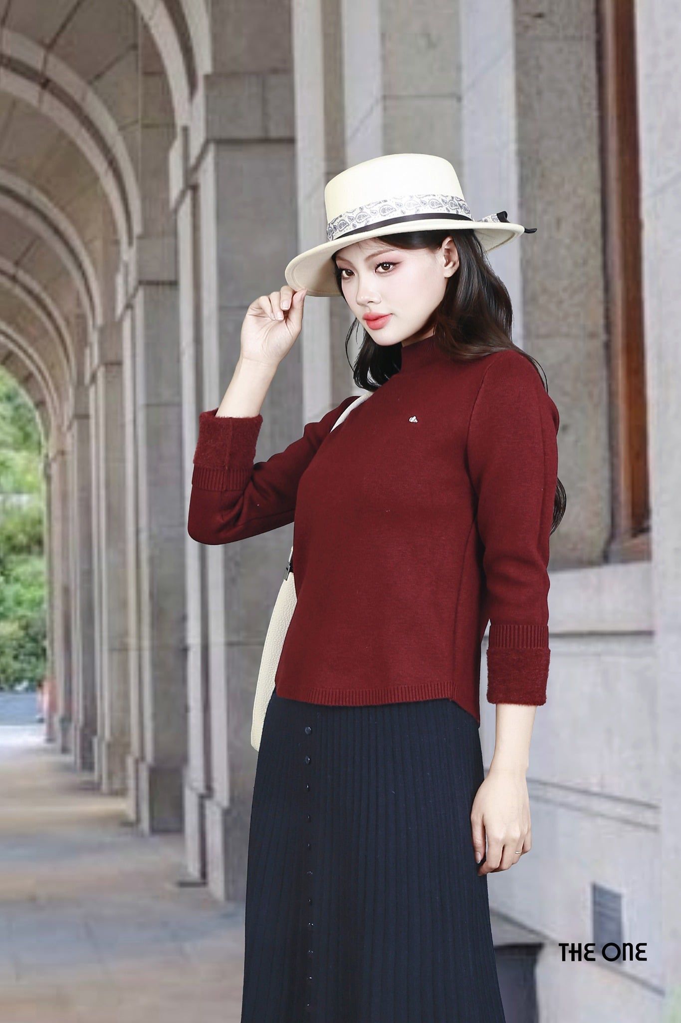 Áo len đỏ đô lót lông tay dài cổ tròn 5F đuôi tôm