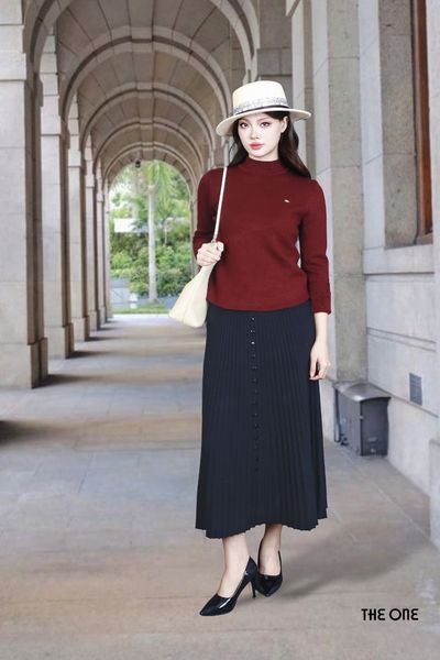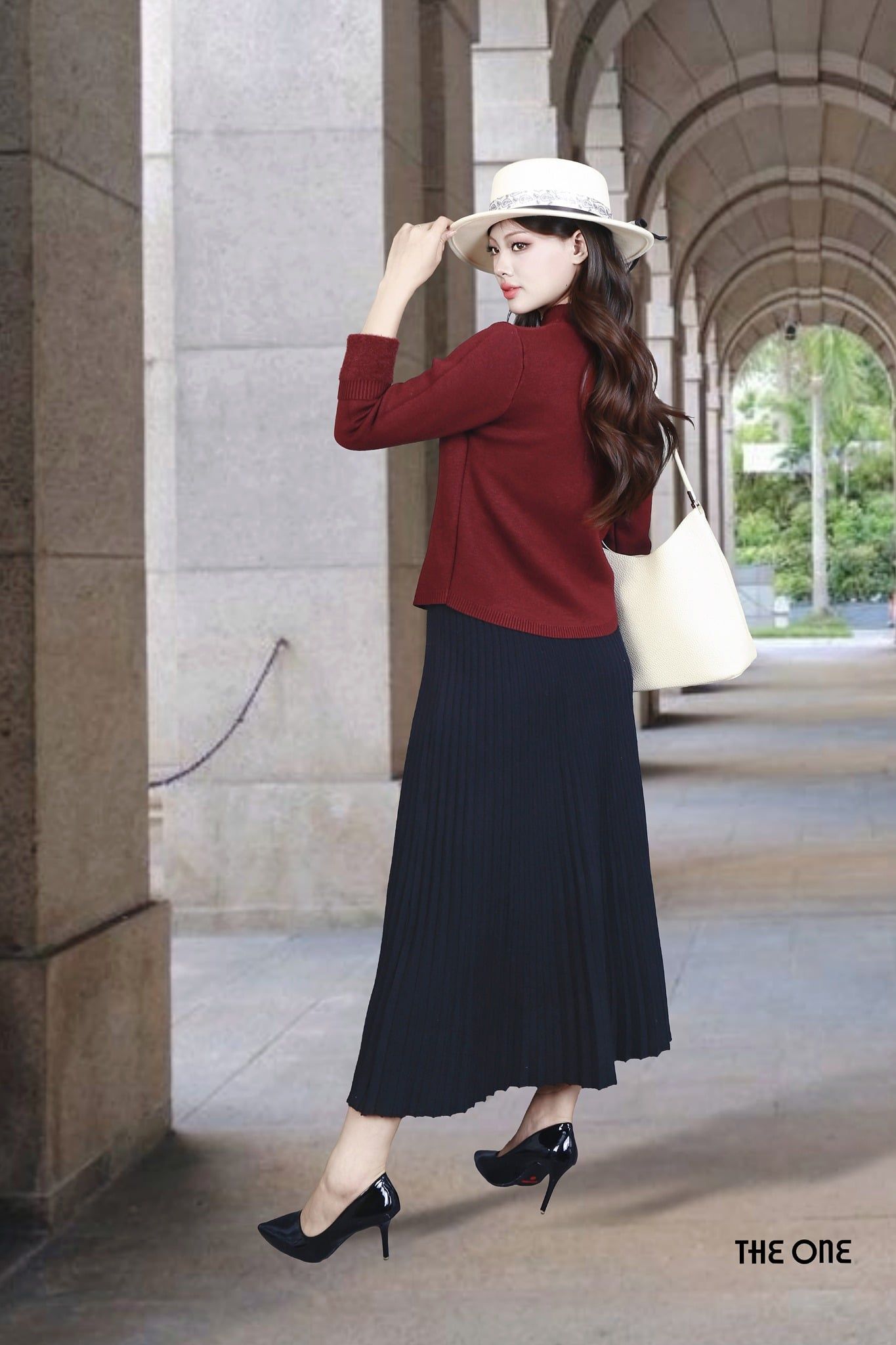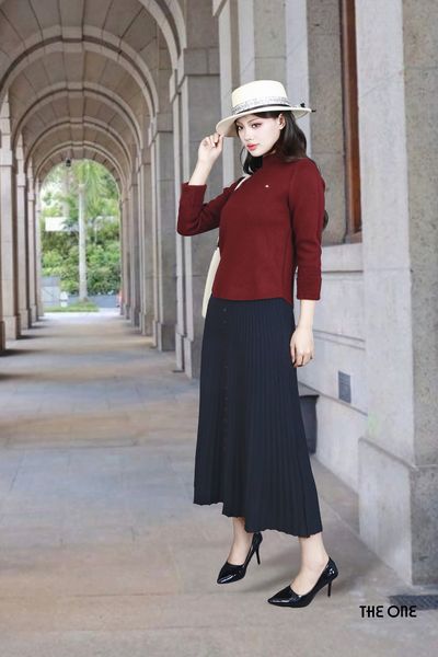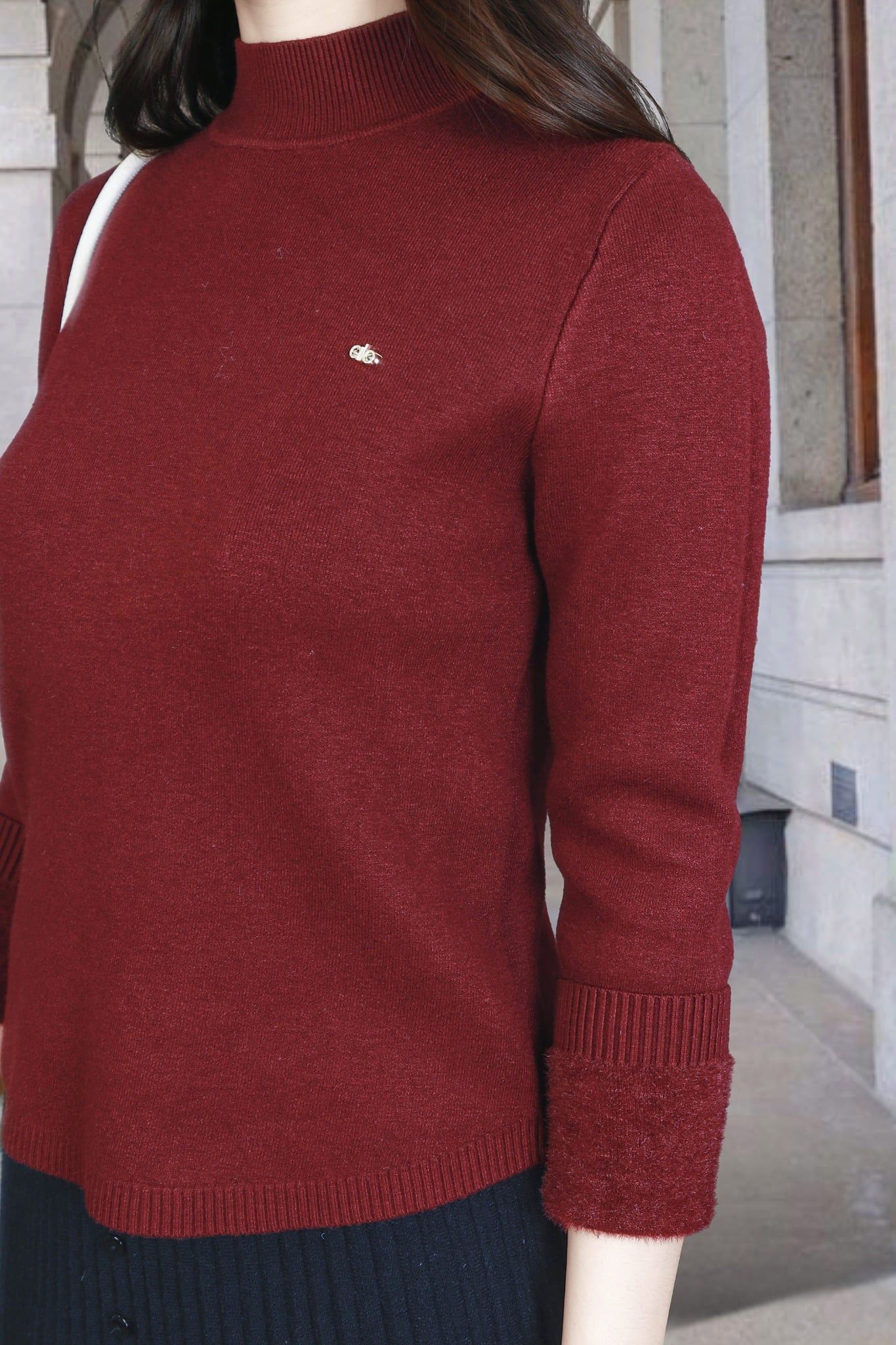 Áo len đỏ đô lót lông tay dài cổ tròn 5F đuôi tôm