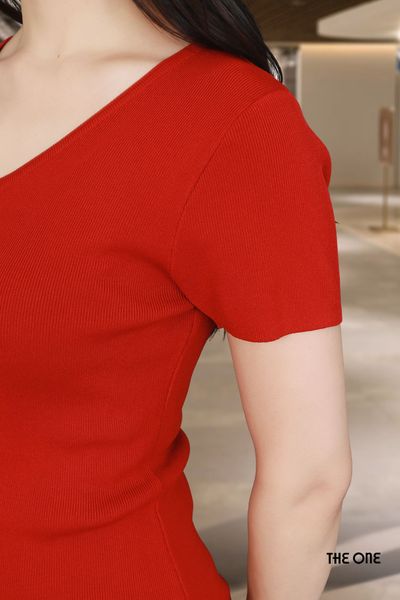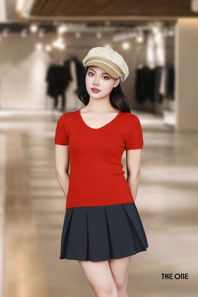Áo len Mongtoghi đỏ đậm cổ tim tay cộc