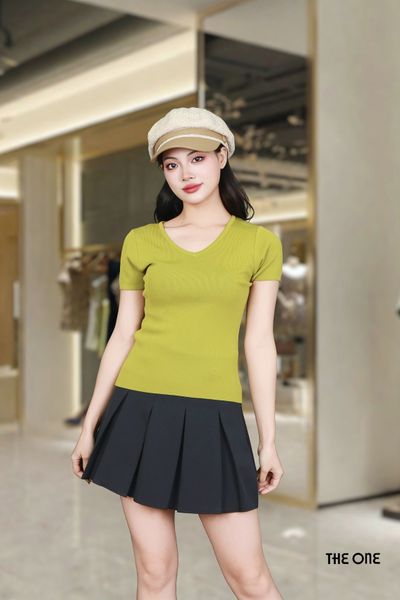 Áo len Mongtoghi rêu cổ tim tay cộc