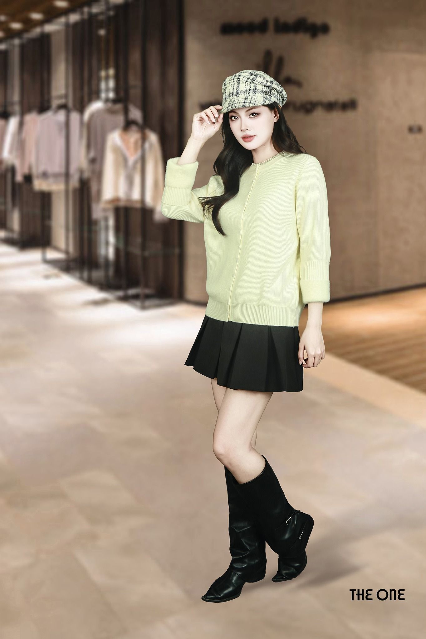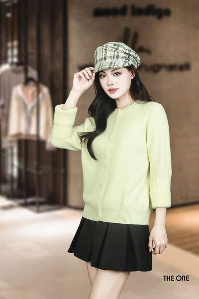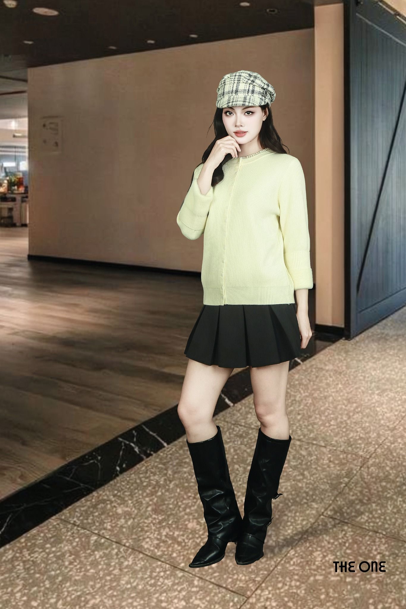 Áo len cardigan kem lót lông tay dài bèo cổ