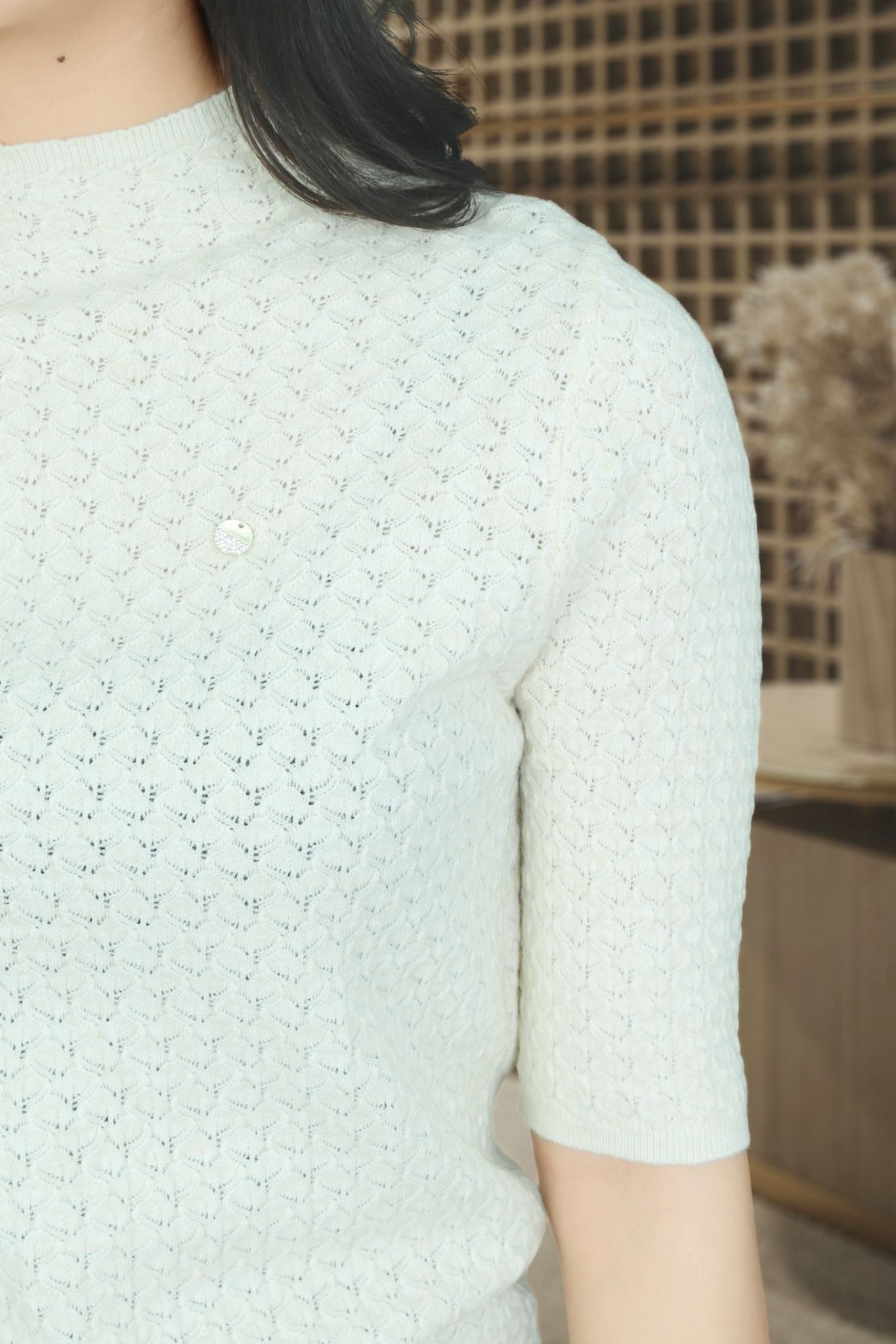 Áo len be cổ 5F tay lỡ cài trang trí ngực