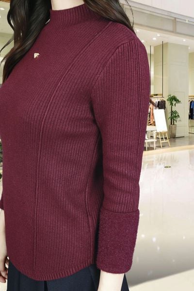 Áo len tăm tím đậm lót lông tay dài cổ 3F