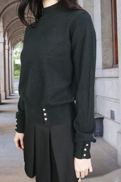 Áo len đen cổ 5cm tay dài khuy đồng tay và gấu